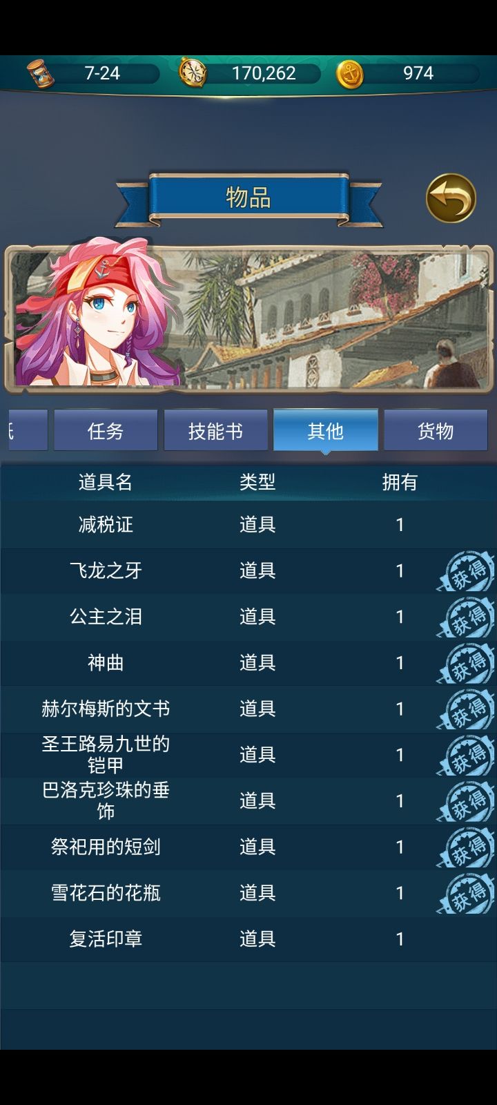 本次过主线没有使用复活印章卡bug,这个是加拉卡斯拍卖会上顺手收的。因为实际上我只花了两天就通关了,所以每日奖励那个还没领。本次挑战无论是原则上还是实际上都不允许出现远程攻击,所以女王其实是用来提速的,偶尔充当战斗灵活单位(给排船短暂吸收一边火力的炮灰)首先取个中二的名字,然后就开始海上乱打,完成资本的原始积累。完成一定积累后,迅速建造中型船只千万不要建小船!!!小船一旦你想多跑几天,你会发现