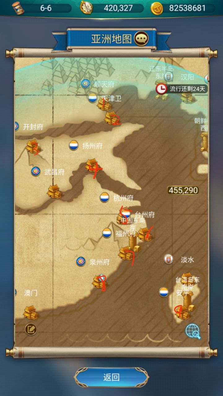 简洁版的速通攻略:一、相关地点的简要介绍1.黑市(进行偷渡操作和买物资包括货物增加证、逆转的沙漏及幽灵旗帜)2.酒馆(招募水手及相关角色及遗迹喝酒)3.道具店(买材料,接任务)-----------二.尝试速通的必备条件:1.氪金(女王号+大飞,至少需要大飞),双倍遗迹探索。2.已经通关至少一次,留有存档号随时进行信息查询3.了解速通关键-----------三.速通关键1