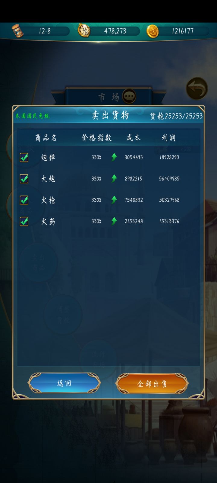 主线任务完成之后就去刷百慕大,争取把福船和东印度刷出来。建议用五改大飞刷,怎么刷看大佬的攻略。有了福船五改后就开始去开封进货,就买四种,用货物走私证不停的刷新购买,知道装不下或没有钱为止。搞完后去瓦伦西亚卖,一趟收益两亿多。返程去隔壁的巴塞罗那同样的方法买最后四种武器(短剑没收益千万别买)。搞完就去釜山卖(攻略上是江户,但江户要穿过日本海,老是暴风雨伺候……)。武器收益大概一亿多。中途有黑市就刷黑市,我发现后期最缺的还是礼物。当然个人装备够好可以刷安土城。有什么问题相互讨论!真不知道什么时候才能搞死波塞冬,我的大明啊😂😂😂……