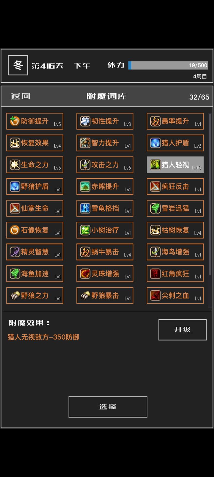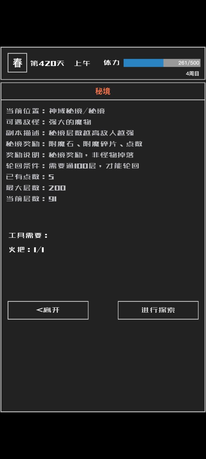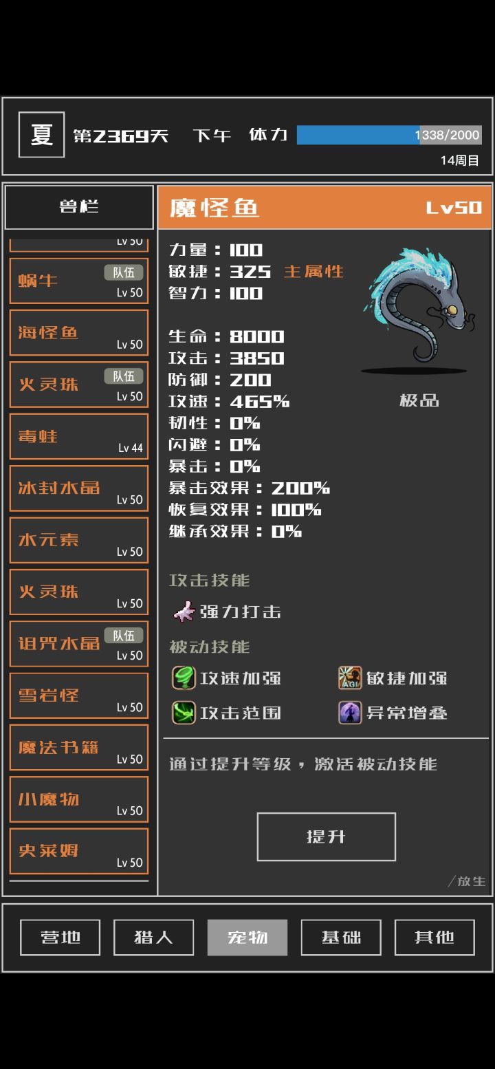 玩到四周目了,感觉游戏还不错,更新后更好玩了。现在爬塔90多,下星期到五周目不成问题。分享点心得,大家一起交流哈。1、主角。因为四周出了暴击莉亚,所以试玩,感觉其实还是二周目那个最强,打怪加攻击,最多100%的那个。2、宠物。宠物大家仁者见仁,枯木怪肯定要,我带的水元素,蜗牛,还有加攻的海怪鱼,可能火灵珠更好用。但不管是那个,记得平时多抓宠,橙宠迟早要,越往后差别越大。3、附魔。附魔根据喜欢