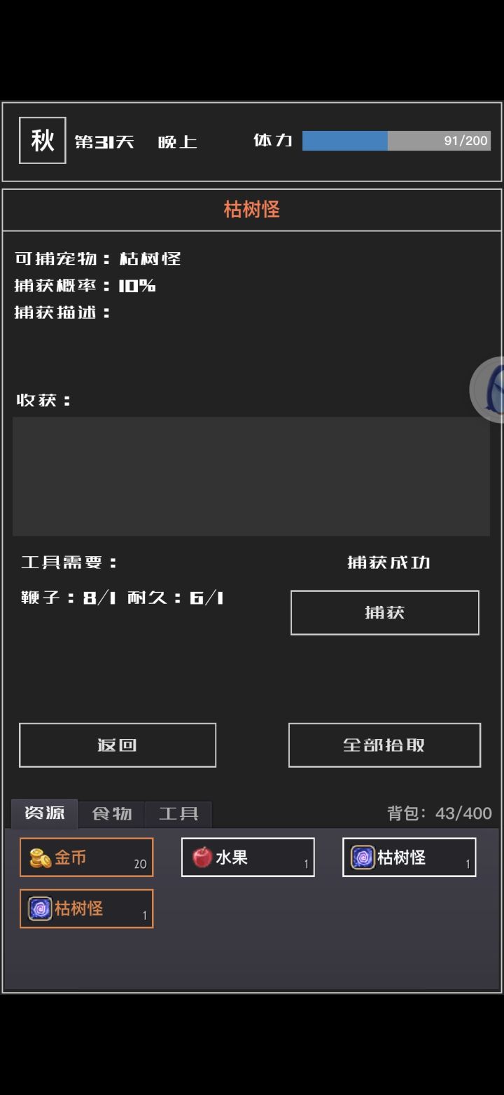 啊,极品枯荣怪确实好难抓呀!除了第二次运气好,抓了一个。接下来十五六个鞭子就抓了一个子的十来个白色。唉,运气啥时候才能来到我身边。