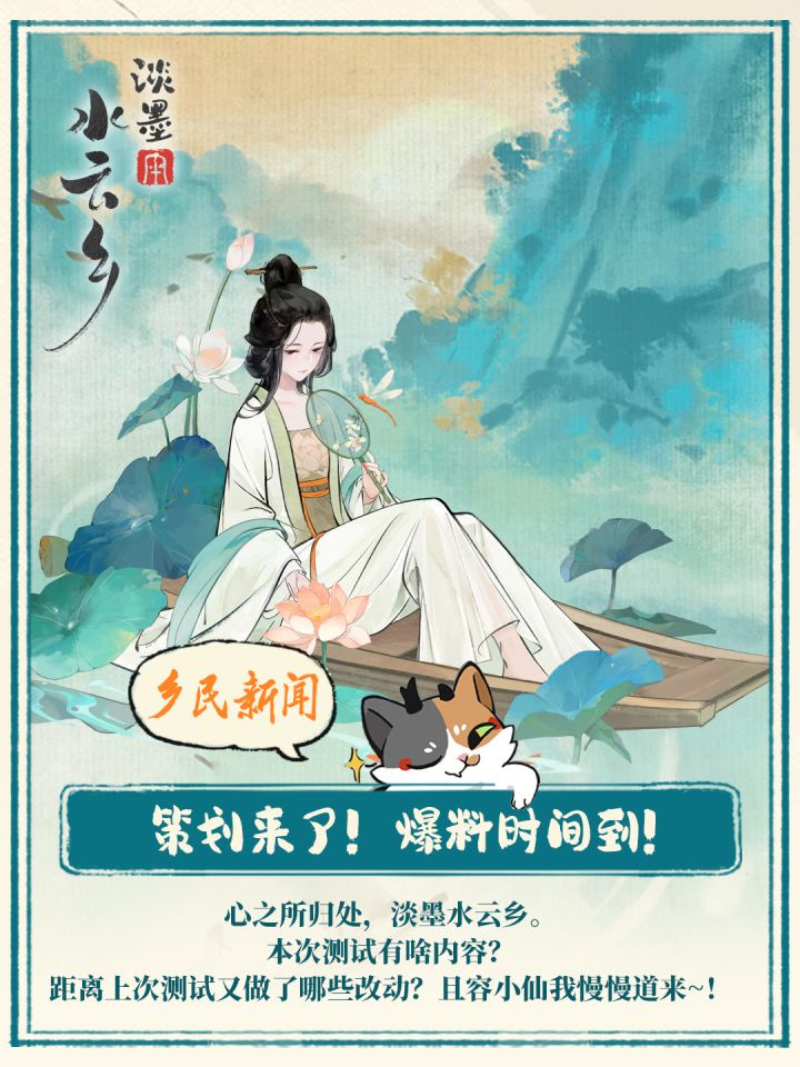 仙君们好,水云乡勤劳“监工”白泽登场!若各位经历了早前的【篝火测试】,想必对水云乡已经有了一个初步的概念~但仅仅是概念哟,因为【渔歌测试】要来啦,这一次策划们对水云乡进行了超多施工大改造!呈现给大家的是一个熟悉又“陌生”的全新水云乡!猫语翻译成人话:其实就是想告诉各位,我们改了啥~要点关键词:主角可选、自由换装、王城开放、家园系统、结交好友、全新名士、新天气系统……呀写不下了,请看VCR