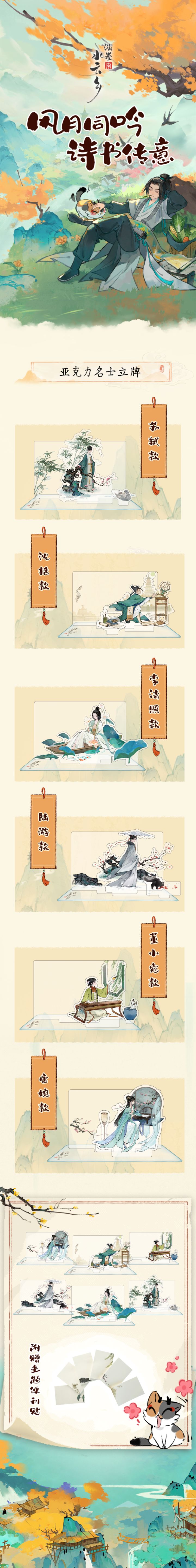 水云乡里也过双十一?不仅要过,还要请6位名士大大和仙君一起过!在上一期的周边爆料中,蘅芜君感受到了仙君们的讨论热情。今日火速召开双十一种草大会,为仙君大人们奉上:苏轼、沈括、李清照、陆游、唐婉,以及董小宛的定制立牌~没有套路,没有算计,《淡墨水云乡》全新周边 免费送!【参与方式】欢迎在评论区留言,说出仙君大人心中最喜欢的名士,我们将会随机抽取3位仙君送出淡墨水云乡定制名士立牌1份。