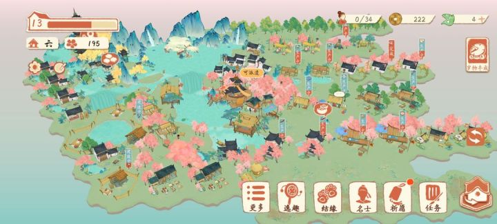 巴蜀建筑自带水的比较多整体下来大部分都是水地,而且12级竟然没有新建筑和多余空地…所以我的布局看起来比较紧凑也懒得整理了。还是继续江南的一列同类型并排布局,并合理搭配可获取建筑达成集美观和实用一体!由于有点摆烂祈愿跟仓库都没去拉高存储量就不丢人现眼了!接下来为大家带来巴蜀的山水之画山泽苑的小动物也很可爱