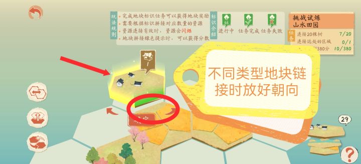1.不要盲目的去链接地块2.注意地块上的元素,要留好链接面3.不同类型地块链接时,看好朝向4.达成同类型地块链接目标可以获得更多地块5.相同地块成功链接会有高亮提示,注意观察#淡墨水云乡#渔歌测试二测#种田游戏#模拟经营游戏#游戏推荐