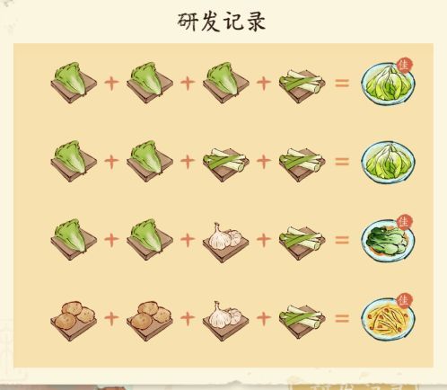 今天开了食庄,大大满足了在下做菜的小爱好,凭借我的不懈努力,轻松拿下第一层的食谱和最佳搭配!现在分享给大家!!菜品一共是6样:家常土豆丝(土豆+土豆+蒜+大葱)清水油面筋(面粉+生菜+蒜+大葱)蒜蓉炒时蔬(生菜+生菜+蒜+大葱)大杂烩(土豆+生菜+大蒜+大葱)白灼生菜(生菜+生菜+生菜+大葱)葱包烩(面粉+面粉+大葱+大葱)#攻略#新手攻略