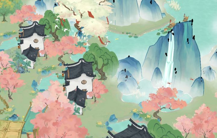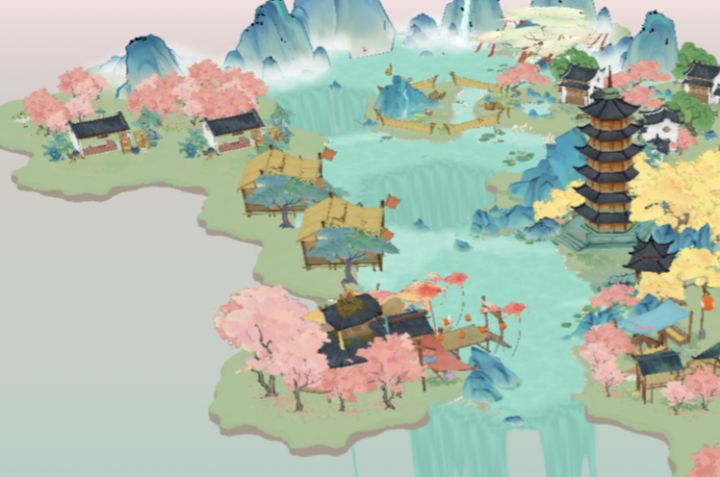 两个水景之间空一个位置会形成瀑布(切换角度),看起来场景更有落差感,但是水流落下随机出现石头挡住,呈现出的效果不佳建议出个玩家可以设置的场景固定