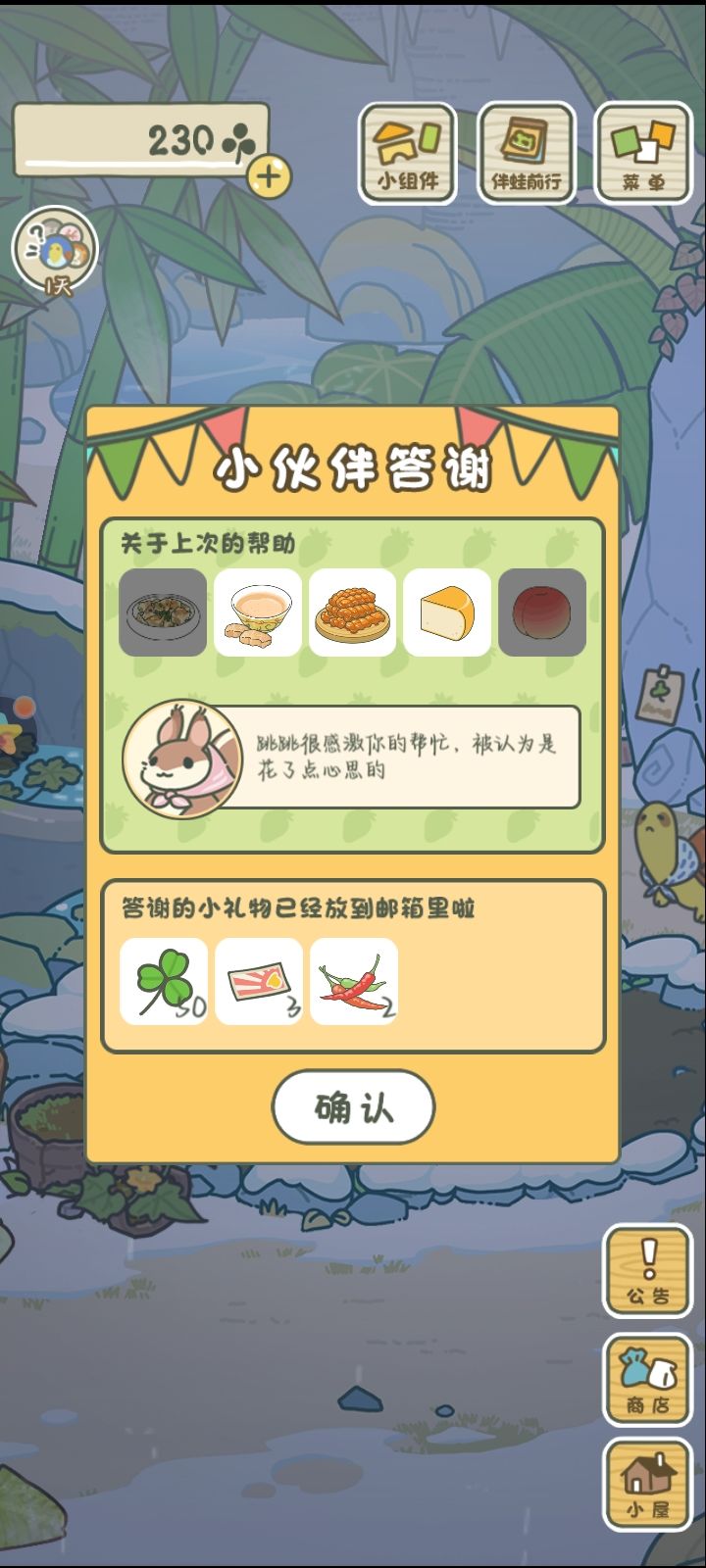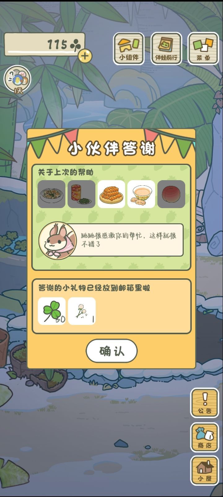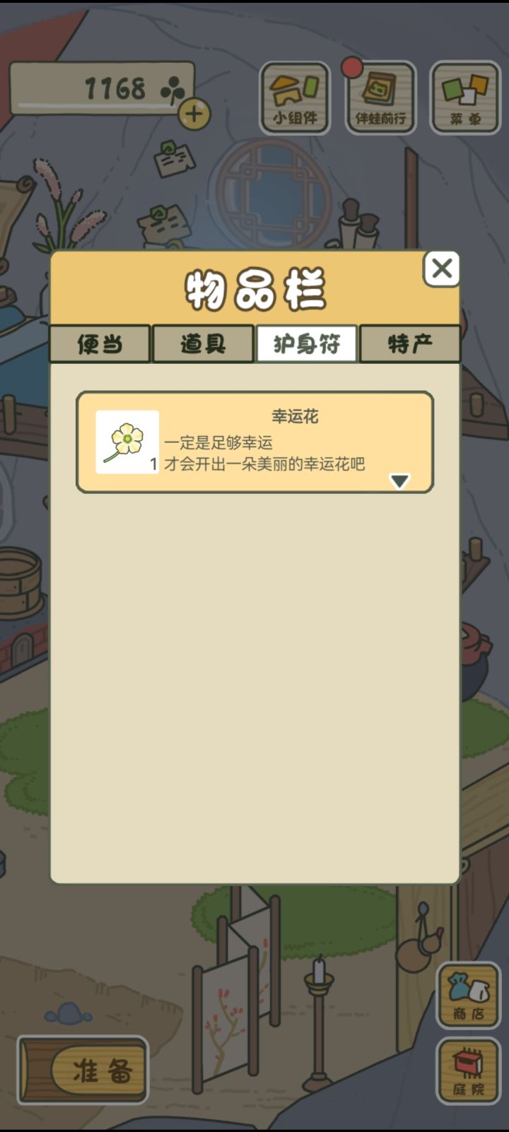 心情:纠结(●__●)今天我盘了一下,护身符只剩下1朵幸运花了,便当虽然只有俩,但是其实也还好,毕竟我的三叶草足够买便当了。前两天一直没怎么在商店买吃的,几次旅行都是靠着日历送的食物。而且我已经好几天都没有护身符进账了,所以在试图努力攒三叶草买锦鲤玉佩。前两次旅行家里的蛙儿子几乎都是快3天才回来,就算是在桌子上放满了食物,也总是在担心它会不会去流浪不回家了。但是现在只剩下一个护身符的前提下,我