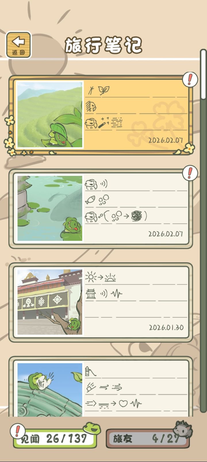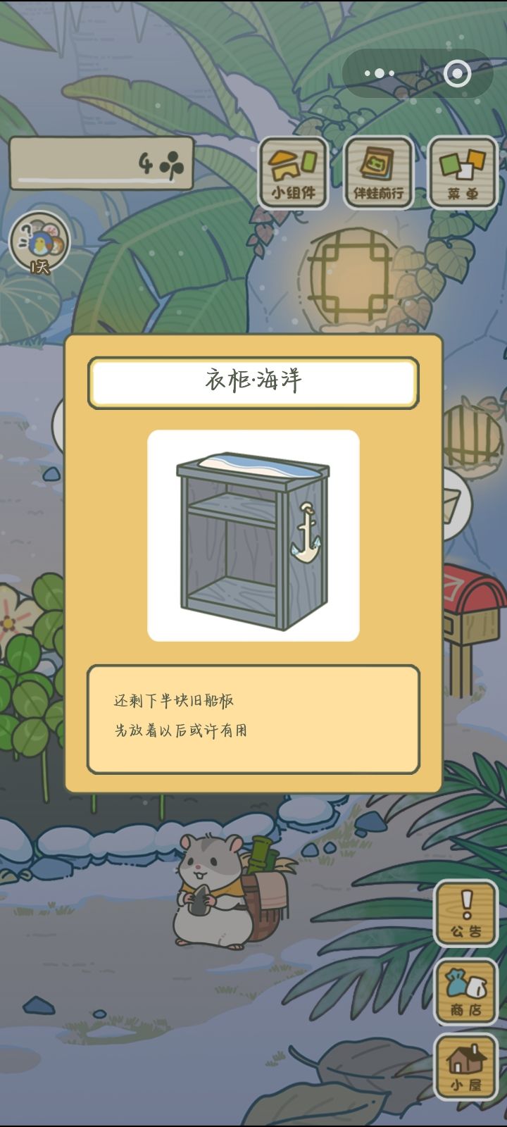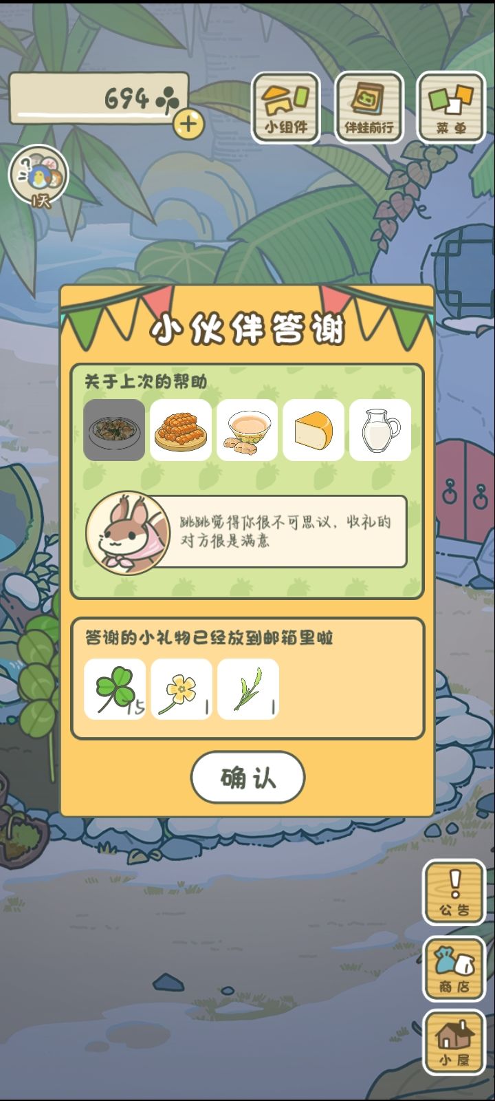 心情:纠结(●__●)今天我盘了一下,护身符只剩下1朵幸运花了,便当虽然只有俩,但是其实也还好,毕竟我的三叶草足够买便当了。前两天一直没怎么在商店买吃的,几次旅行都是靠着日历送的食物。而且我已经好几天都没有护身符进账了,所以在试图努力攒三叶草买锦鲤玉佩。前两次旅行家里的蛙儿子几乎都是快3天才回来,就算是在桌子上放满了食物,也总是在担心它会不会去流浪不回家了。但是现在只剩下一个护身符的前提下,我