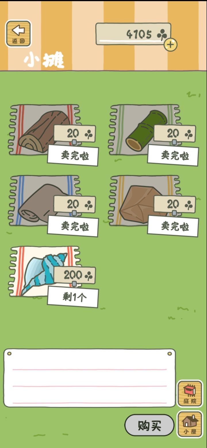 最近出售棕榈叶的概率是不是高了点,我都做出一套雨林家具了,嘟嘟天天都是出售棕榈叶。想买海螺、丹红纸甚至岩纹石也可以啊😂