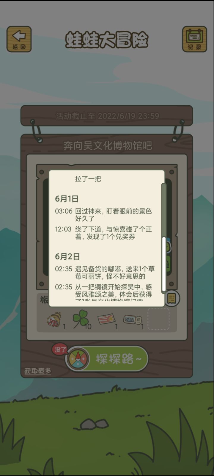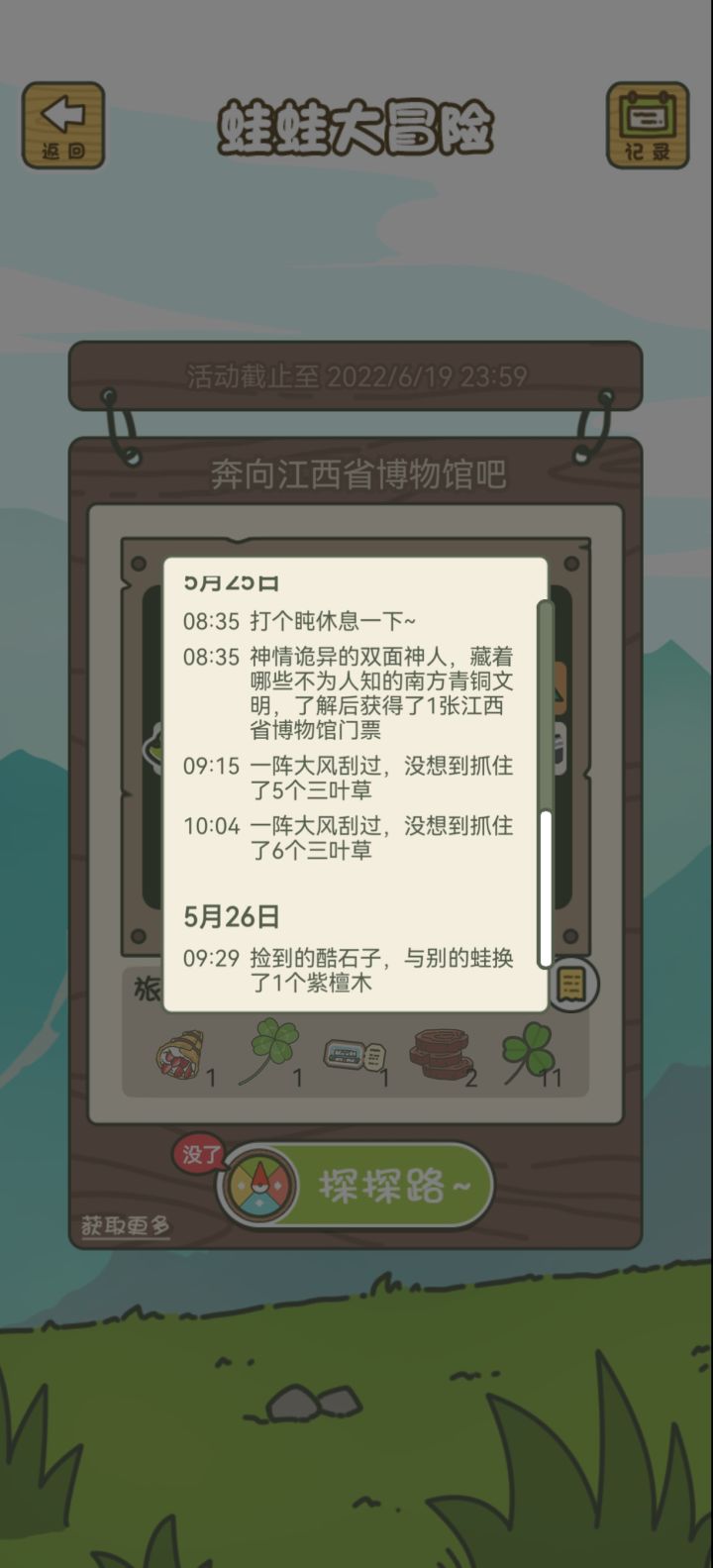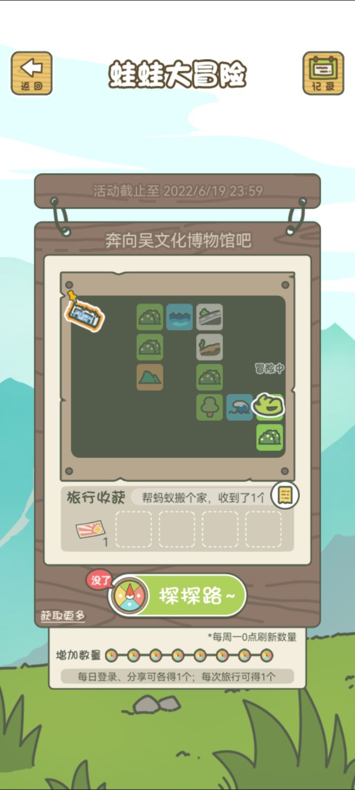 活动不是到19号么,为什么这两天登陆都没有次数了啊😓而且这次探索真的是路上发呆四五次,真的狠