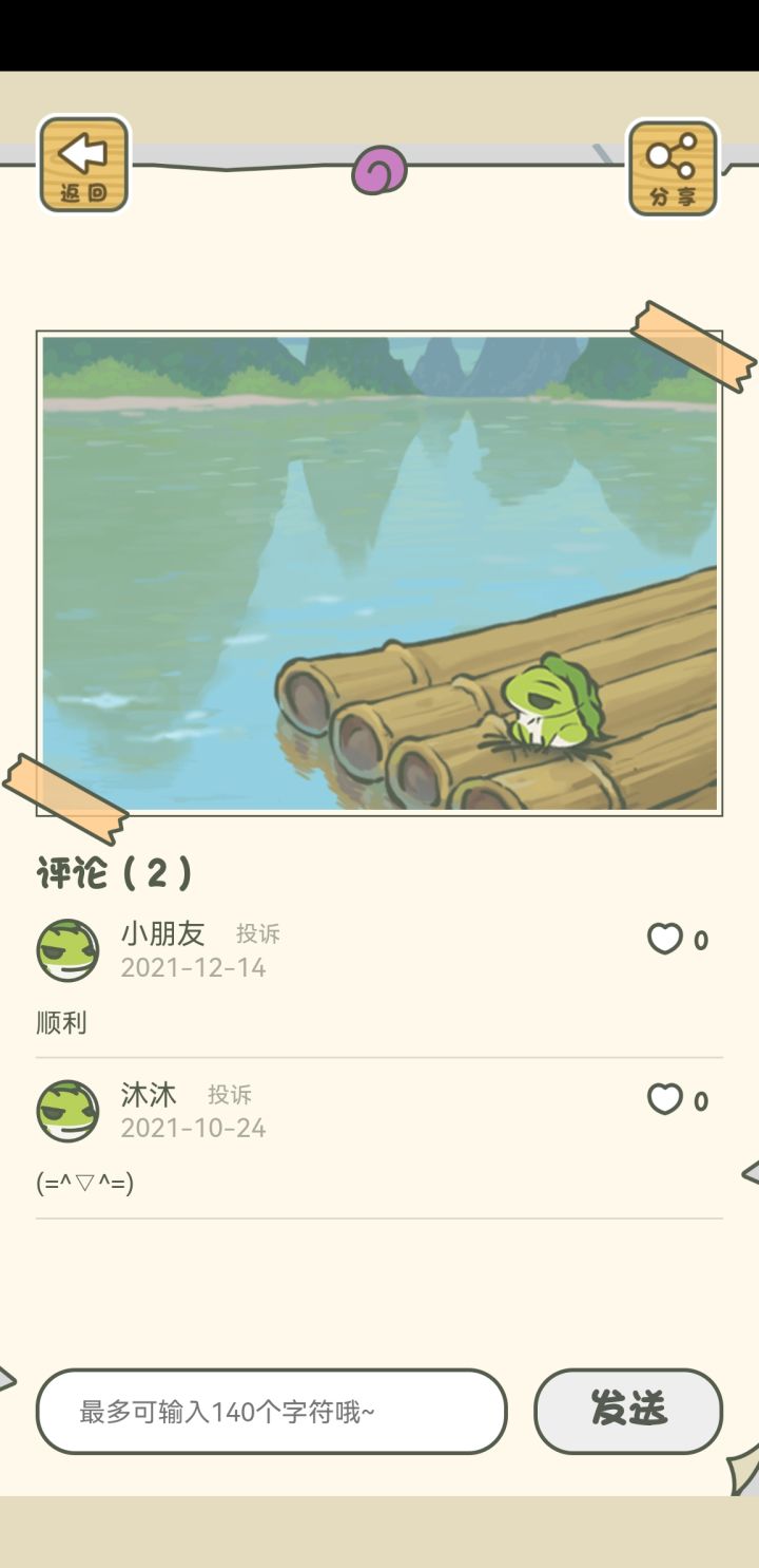 很好玩的一个游戏,有等待就会有收获。努力丰收的三叶草购买用品,蛙蛙每次出去带回来的照片、特产。养蛙的宝子们也会期待蛙蛙每次带回来的东西会是什么、交的朋友会怎么样。总之不会让蛙麻麻们失望😋