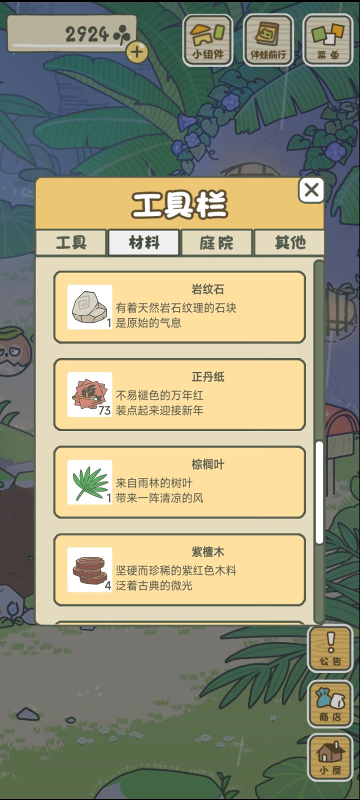 朋友们多出来的岩纹石和棕榈叶能干嘛啊#旅行青蛙#旅行青蛙攻略#游戏讨论