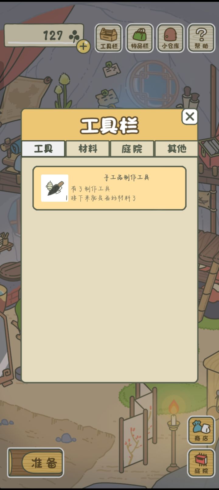 买了工具了,但是好像没有工具台,是蛙蛙还没回家的原因嘛,还有月度烹饪是什么,没找到在信箱边上挂着的蓝色袋子又是什么啊