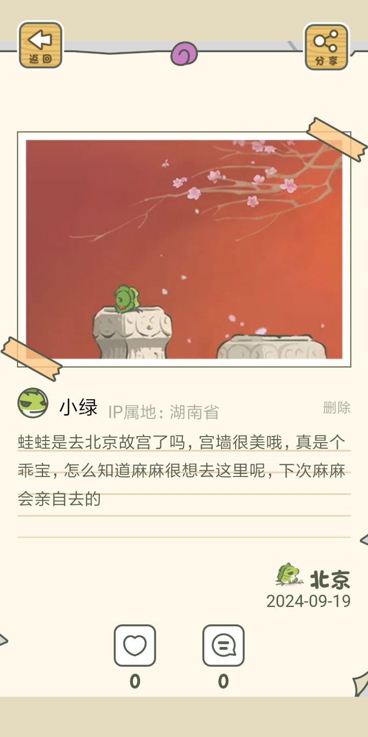 算是回游吧,但登录的时候又是新账号,因为照片和道具都没有了。这个口吻很像自己,我取的名字也是蛙蛙。所以好奇是不是自己以前写的。