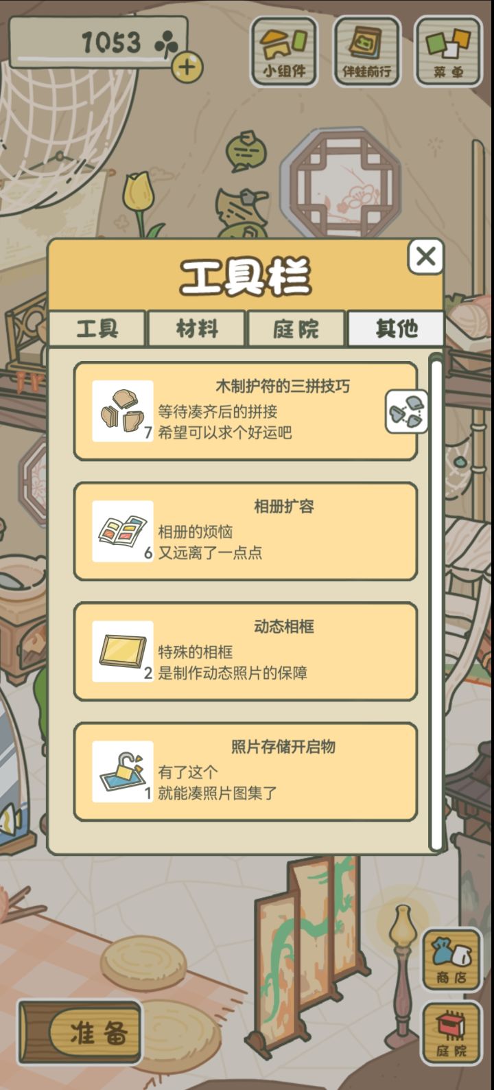 请问怎么换家具呀 别人的好漂亮 我找不到(图一二)还有就是小青蛙旅行一次大概几天呀 我是住校生 每次走的时候把东西准备满 每次回来时我的青蛙都不在 就刚开始玩的时候见过两面 以后再也没见过了发朋友圈只能发逆子发回来的照片(图三) 抓拍都拍不上 玩一个月左右了 一张抓拍都没有 心碎了我和那个空巢老人一样哈哈哈#游戏讨论#单机游戏#旅行青蛙