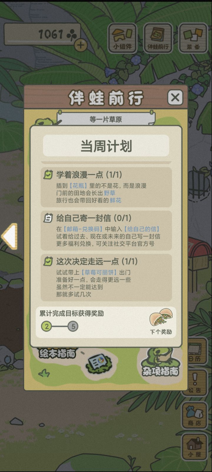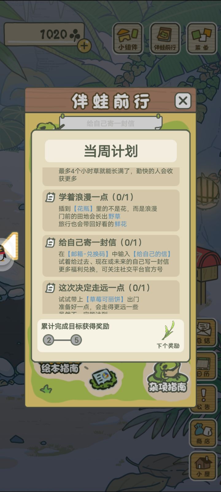 小伙伴们我刚开始玩,这里周计划显示没完成,但我兑换码换过的显示已经使用了,这该怎么办#旅行青蛙#旅行青蛙攻略