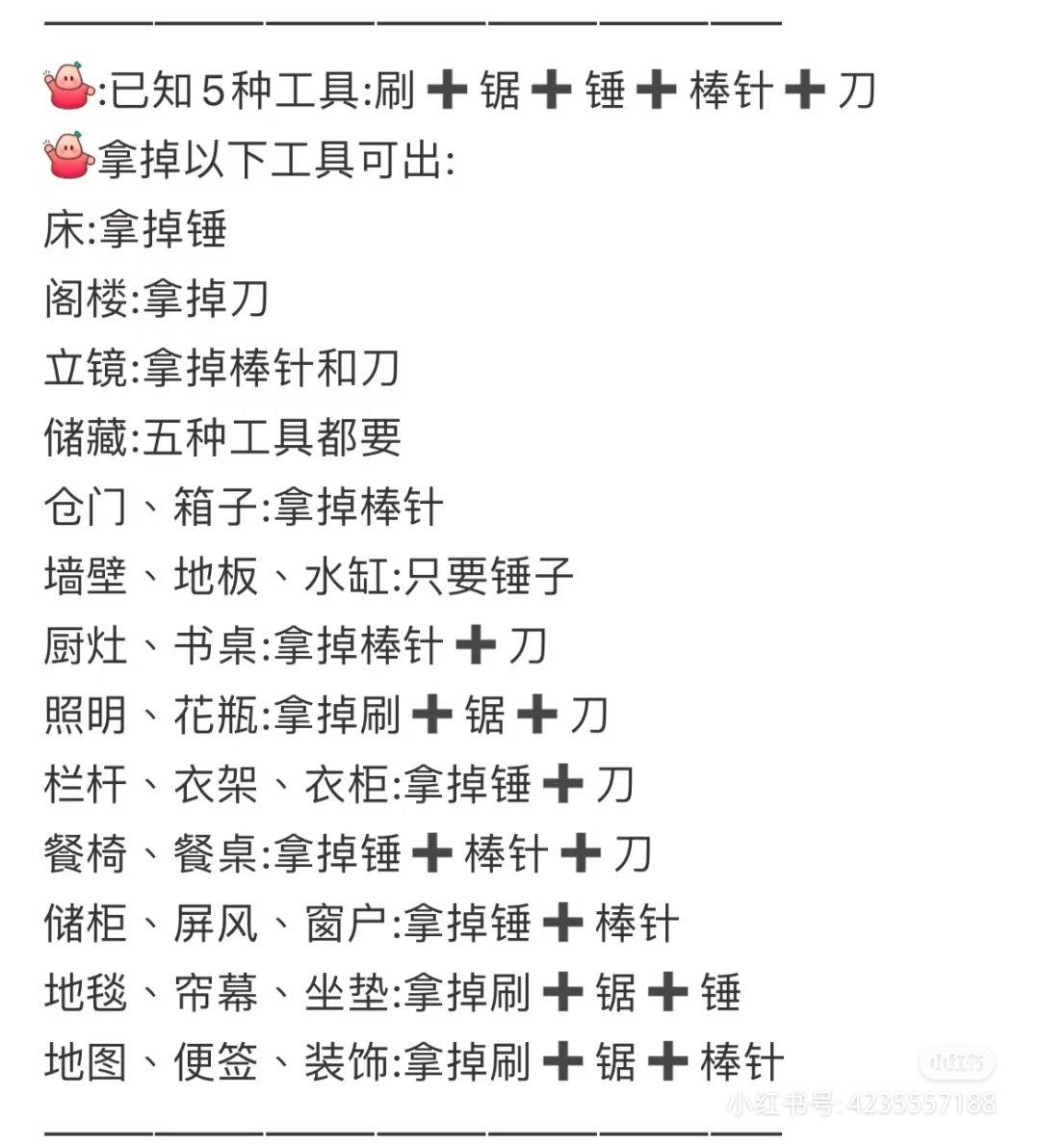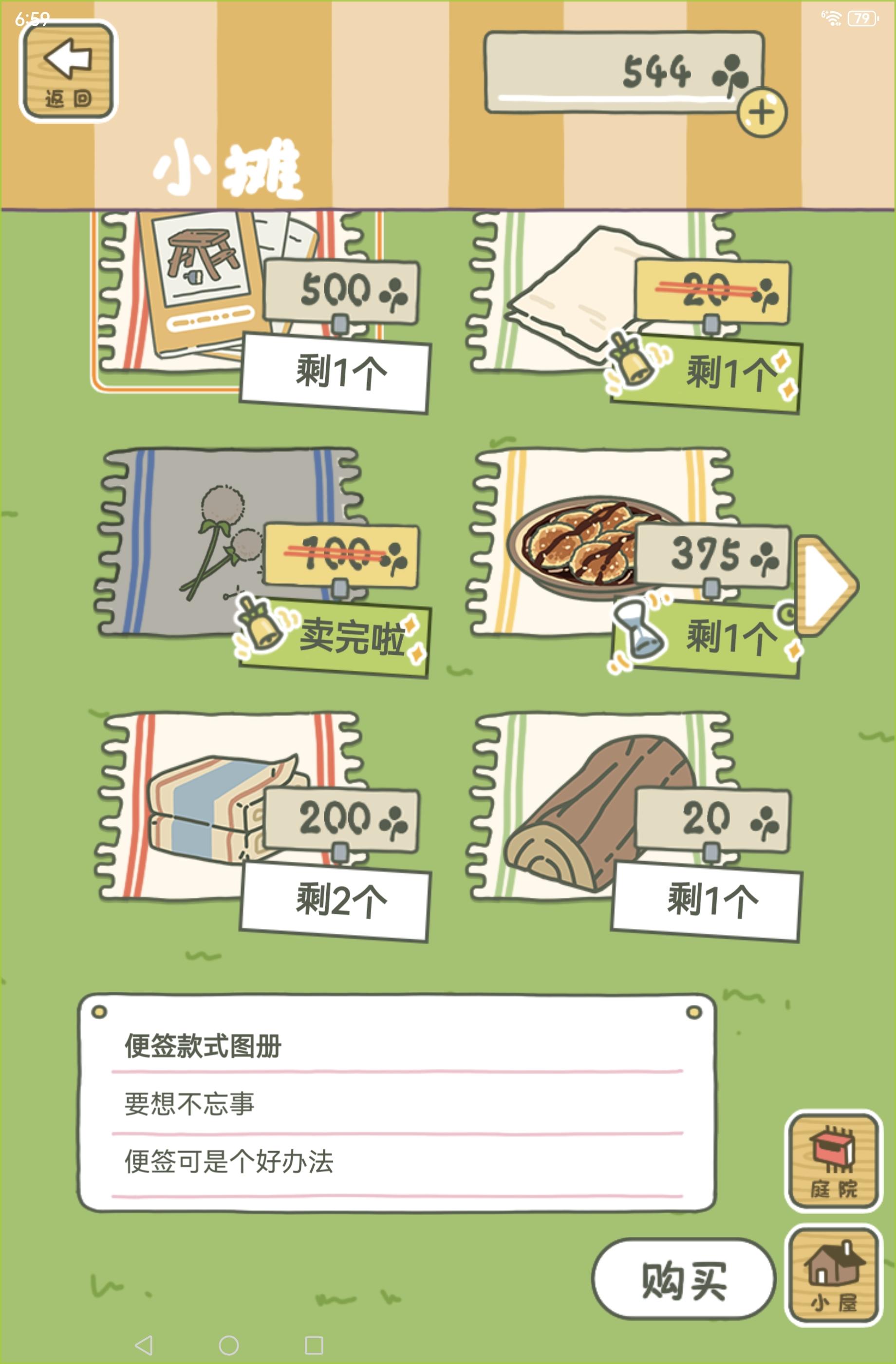 1★~5★为稀有度,★越高越稀有(难刷≠好用)所有判定稀有度的仅个人观点和数据1.免费材料★★是一些小玩意,如普通材料、朽木、杂草等如果广告没有bug或不嫌麻烦建议去获取2.家具制作图纸★★只要没有相关制作图纸嘟嘟就会一直带过来,一个500草,一共27个,总计13500草建议中前期购买3.实用工具★★★一个750草,一共5个,总计3750草,有时候会很经常刷,有时候却没有实用
