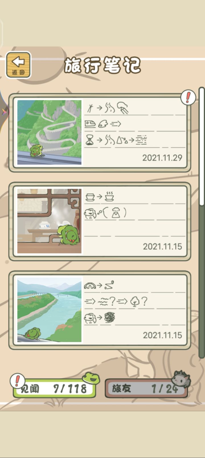 为什么我的蛙蛙没有旅行笔记啊?