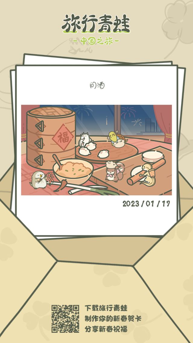 分享一下二周年家具得到的几个途径 1.按步骤制造蛋糕并答对问题 可得二十个 2.点击活动页面的明信片签到活动 可得一个 3.商店刷新的家具福袋 可得两个 4.兑换码 二周年动画送给最好的你 可得一个 5.兑换码 旅行青蛙官方周边上线淘宝啦 可得一个 6.兑换码 2023一飞冲天蛙 可得一个 7.年度总结分享 可得一个