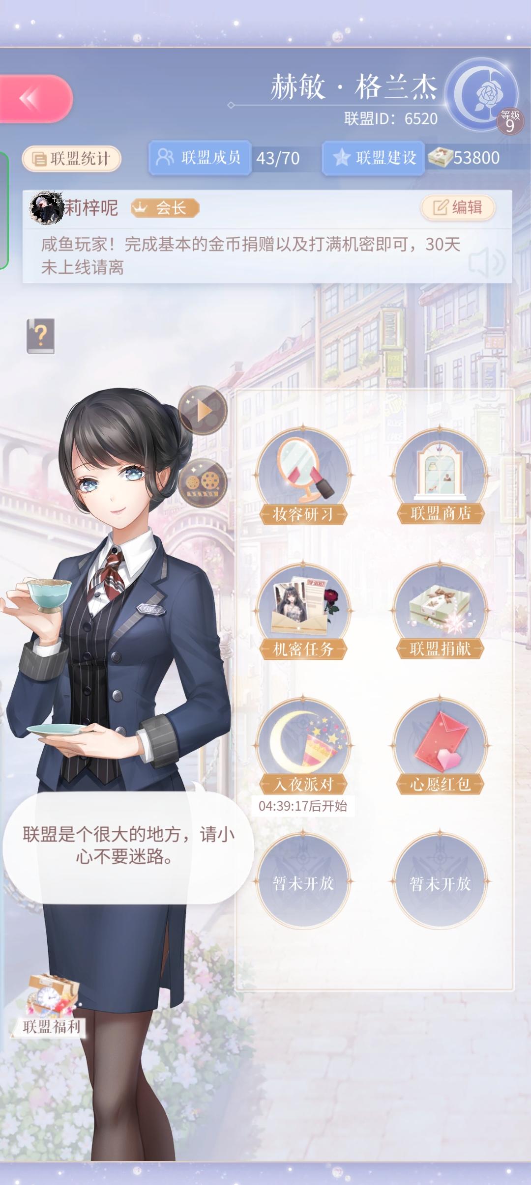 安卓官二,名字赫敏•格兰杰,目前排名1314,平均应该是2000内,混吃等死联盟,没待遇,根据贡献随缘买个联盟周礼包,要求打满机密和金币资源即可,30天未上线请离,不限制等级分数,喜欢直接在游戏搜联盟id6520,没有群