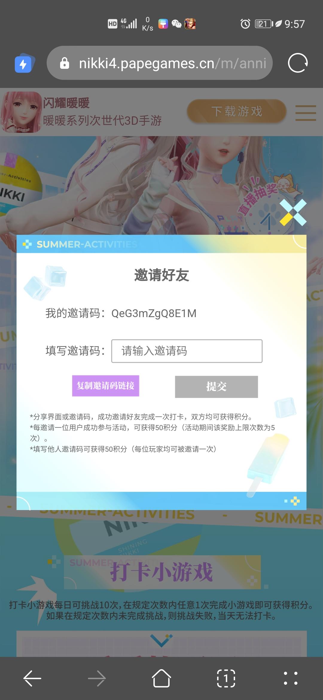 互填邀请码:https://nikki4.papegames.cn/m/anniversary_summer_2021?invitekey=QeG3mZgQ8E1M