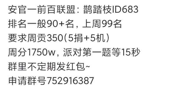 【联盟招人】安卓官一,落星海,id1105🍓没什么特别要求,只要你每天活跃,玩得久就行。捐赠能多捐就多捐,不能多捐就不强求!每天记得打机密就好了!还可以加群跟群里的小伙伴一起交流!群号:362816654🍏🍏🍏球球各路大佬快来!没有你们联盟真的要倒闭了呜呜呜😭😭😭最后放一张漂亮女儿镇贴!