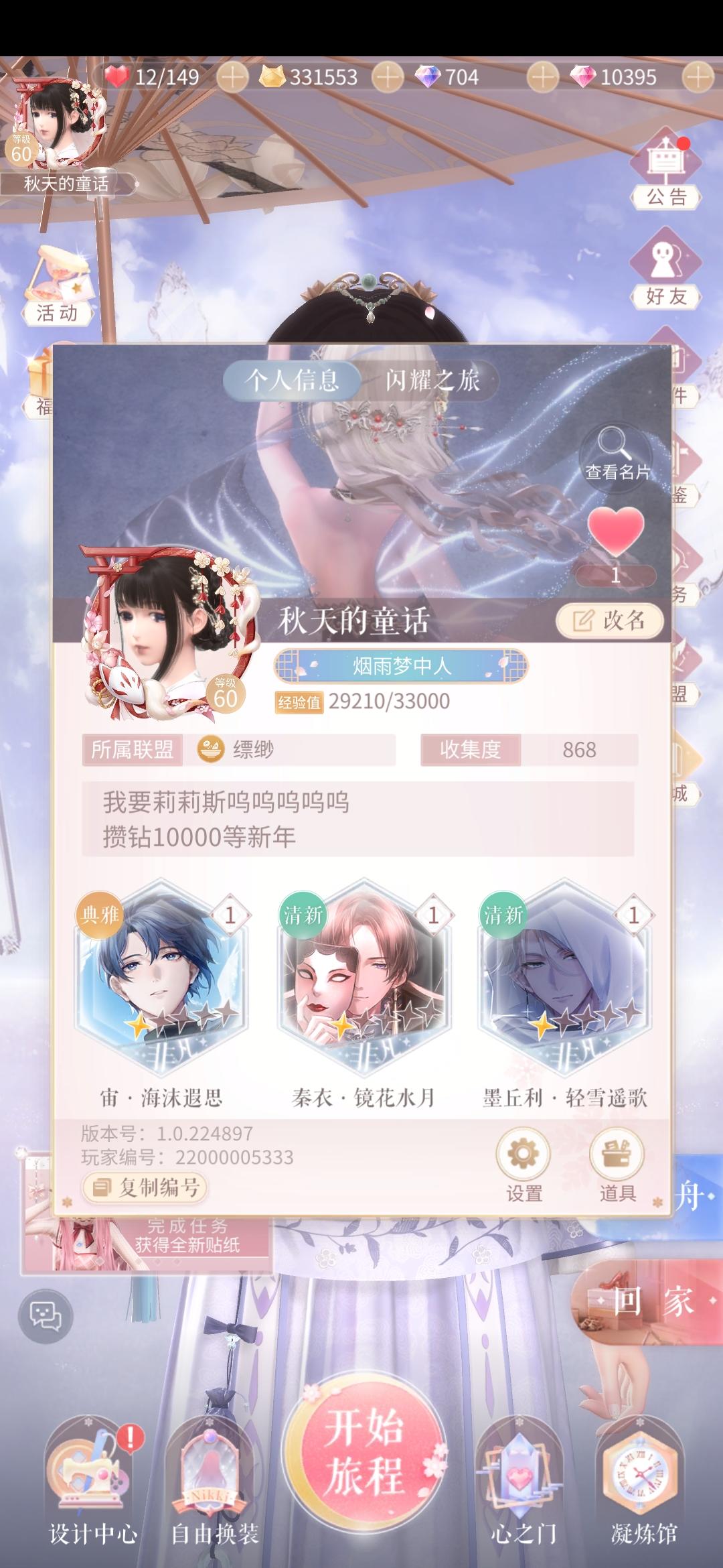 求联盟,三区,每天机密都会做。甜美3w1。典雅3w3。性感3w4。帅气3w7。清新3w2。如果要求竞技场排名勿扰,本人jjc佛系,但是每天必定任务会完成。
