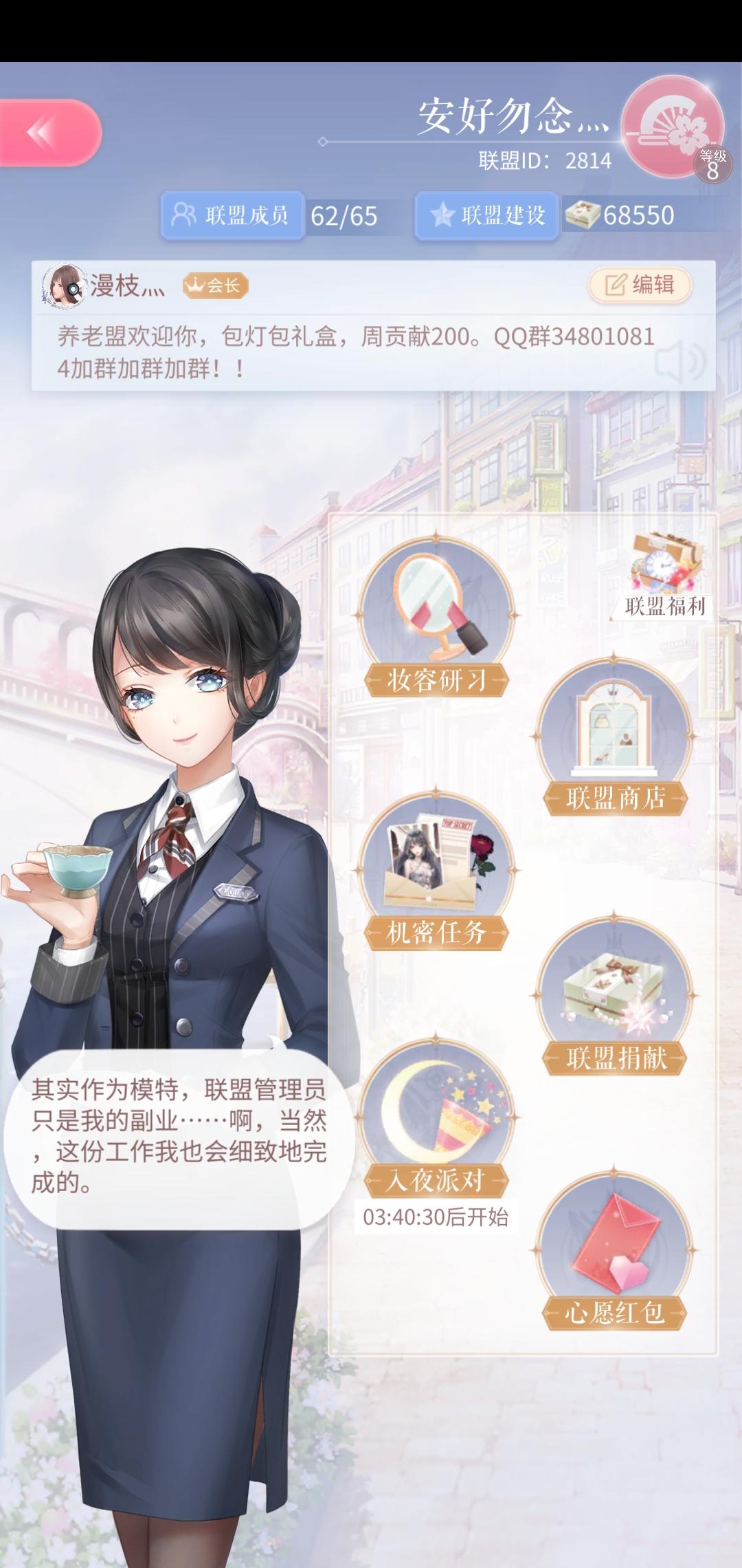 联盟ID2814,可以升九级了,坑满了就升级,机密大概200名上下,所有的福利都会开,福利好,要求低,其实就是很佛系,详情写楼下。