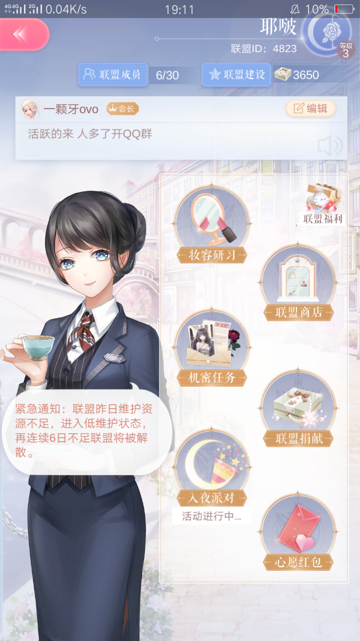 现在的联盟虽然还可以,但是这才两天就已经开始有颓废之势了。好几个人啥也不做,联盟等级也一般般不升级,求靠谱联盟带路~