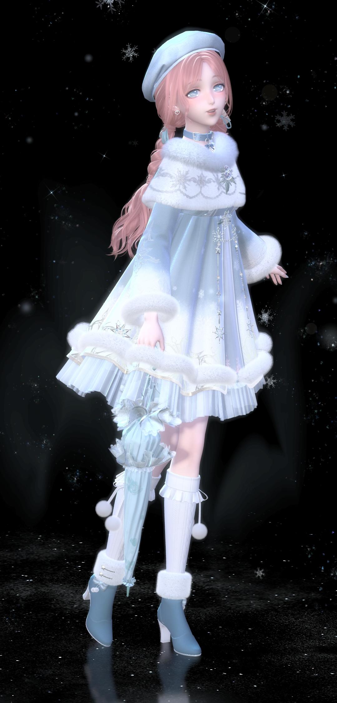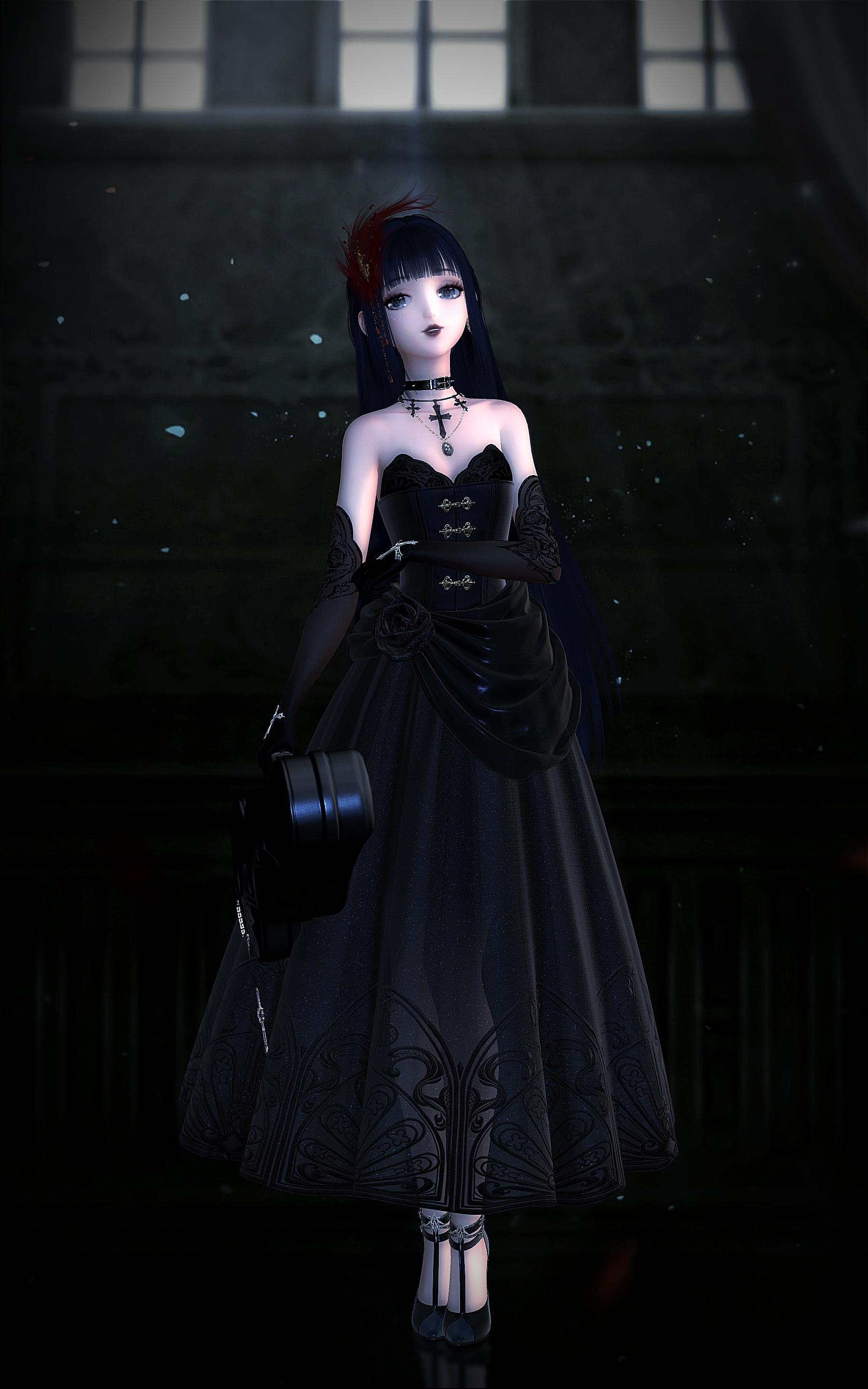 累充套很好看,但是外套和头发互相穿模。哥特风的黑裙看起来很有优雅的感觉,但是很僵硬,做动作极易穿模,还容易有变形的bug。狗叠今年偷懒了。