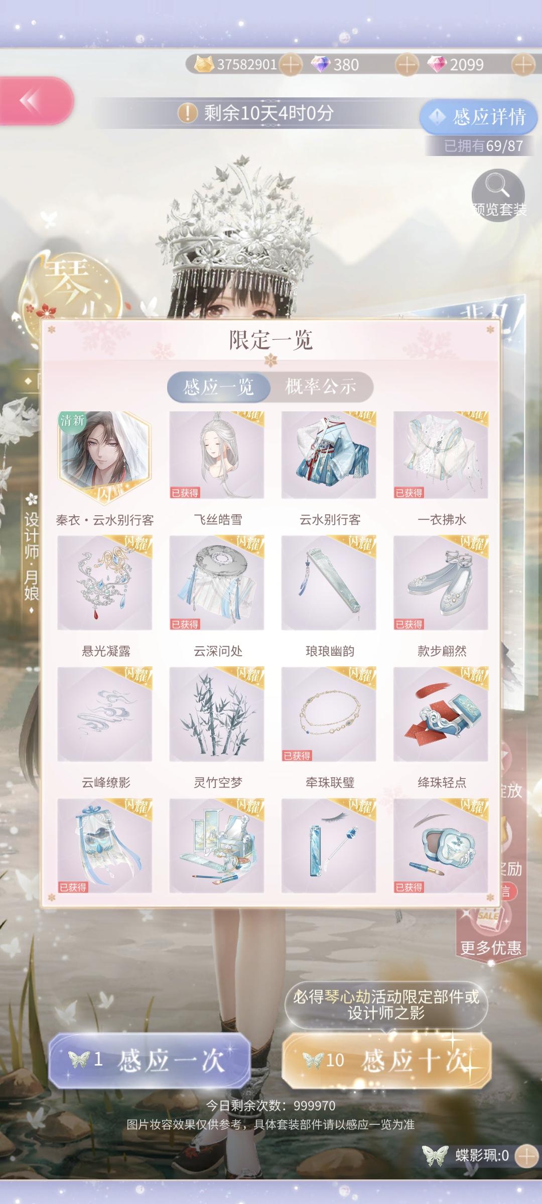 如题,我感觉我真的不会用贴纸啊!就知道乱铺花花,虽然不会出错,但也不出彩!另外琴心劫活动,40抽一张秦衣卡,一张月娘卡,月娘那套有五件,秦衣这套有后面的竹子和头发,真的,我超想要那个竹子!还真中了!#闪耀暖暖#闪耀暖暖搭配赛