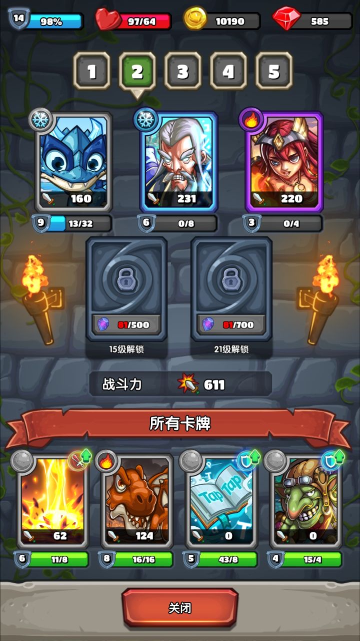 因为目前还没有解锁全部卡牌,所以不知道会不会有新的类型的出现,但就目前来看,所有卡牌可以分为5个类型:第一类是直接伤害的,但是伤害的系数固定,所以在后期就是弟弟,主要用途还是速刷低难度关卡拿奖励,毕竟一阵乱划后放技能谁都会!不值得主升,但是有多余的资源也可以培养下。第二类是资源类的,比如经验和金币,肝系玩家必升,只要你够肝,故意带低伤害牌拖回合,这类卡的收益还是比较爽的,但是佛系玩家,或者缺时