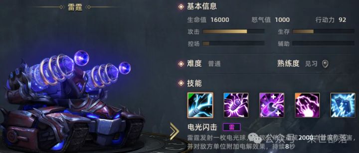 各位指挥官,今天酋长为大家带来雷霆的英雄攻略介绍。 雷霆是一名强力输出英雄,招牌是终极技能稳定的高额群体伤害,雷霆的强化可以根据局势灵活选择,推荐的强化有:再次行动、双发、散射。下面为各位指挥官介绍一下雷霆的具体使用说明。 首先是雷霆的被动技能-导电性可以为所有技能附加穿透效果,无视所有屏障与护盾,为雷霆提供了稳定的伤害能力。 雷霆的一技能-电光闪击会为敌方造成伤害的同时附加电解效果,电解效