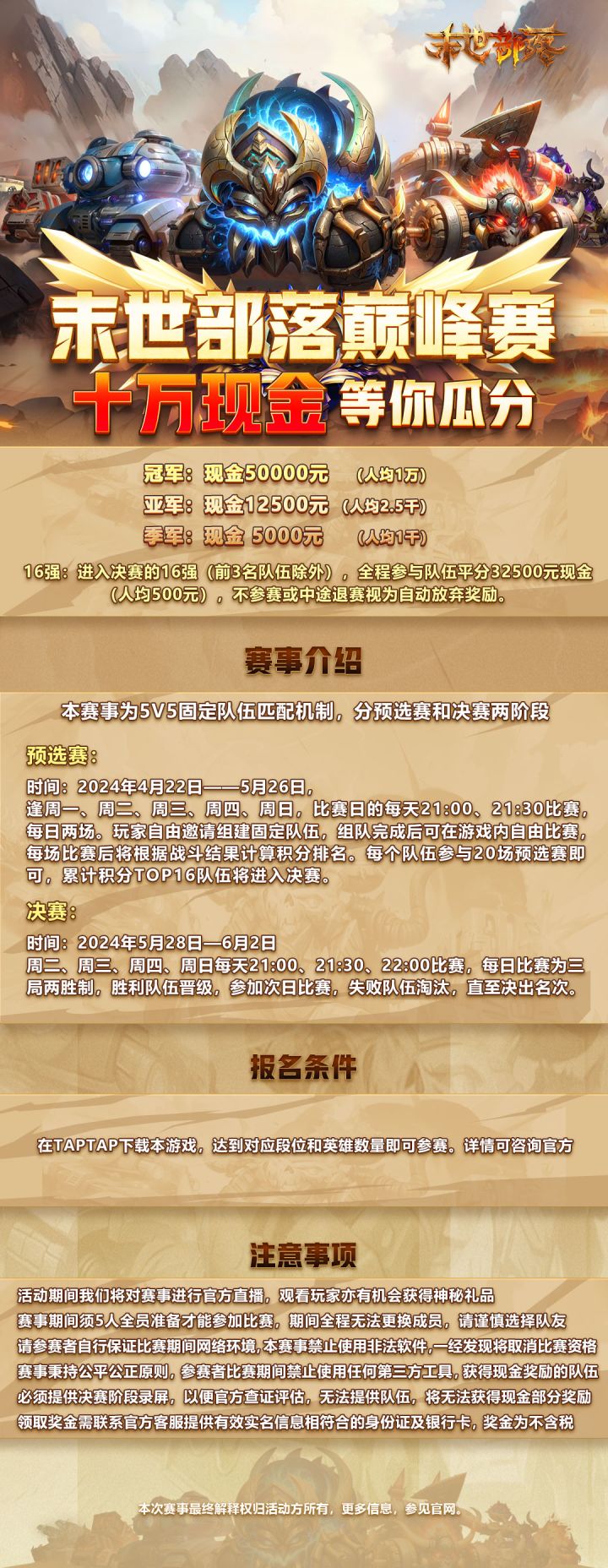 小伙伴们,【末世部落】现金巅峰赛即将开启,要一起组个团吗?