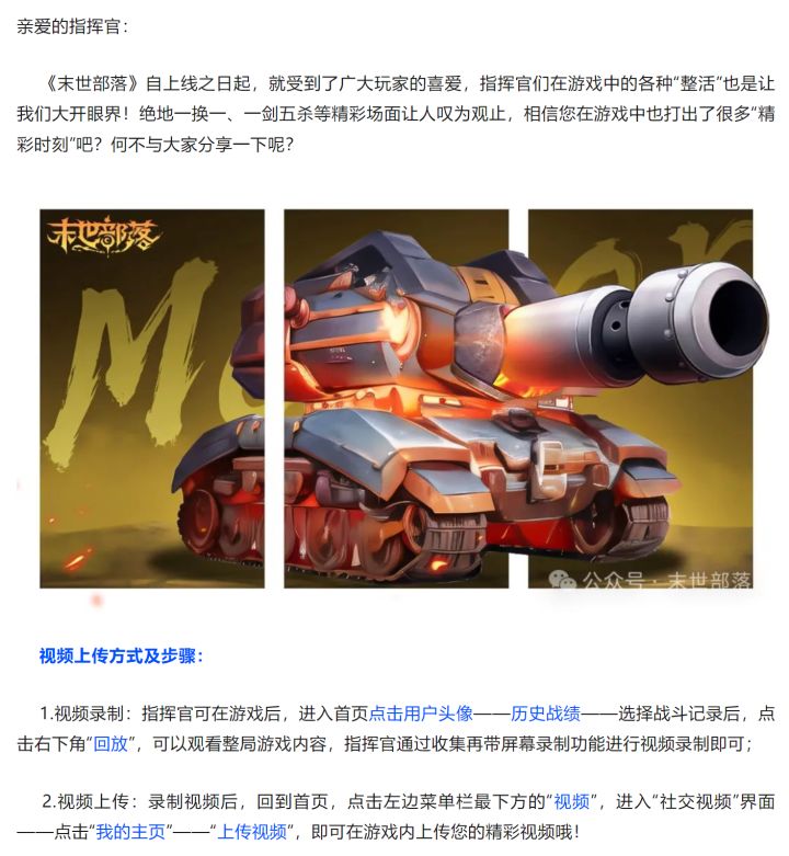 【末世部落】上传精彩视频,记录经典瞬间赢好礼!