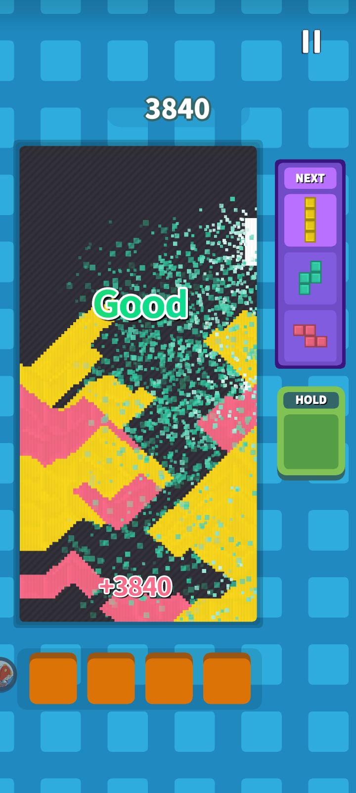 因为感觉同颜色沙块消除的玩法很好玩,开始游戏以来没有使用任何道具和广告复活增加分数,分数均纯靠手打,所以该帖子不涉及使用道具的方法,仅讨论沙块下落这一玩法取得分数。该游戏机制上非常鼓励连消,单次消除一大堆沙子的分数远远不及连续三次消除细细一条的分数。除此之外,单次消除会加快下落方块速度。可以认为要获取高分连消是必不可少的。游戏的基础玩法是同一种颜色的沙从左连到右可消除,但请注意,斜方向上仅有一