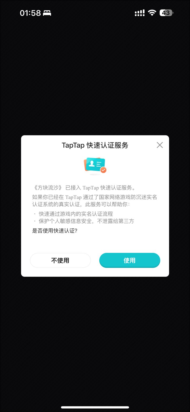 ios版无法进入游戏进游戏问是否使用taptap快速认证服务,选择是会弹出到taptap,同意获取个人信息后就不动了,也不会自动弹回游戏,手动切回游戏就毫无变化 #噗噜噜实验室 @游戏懂哥