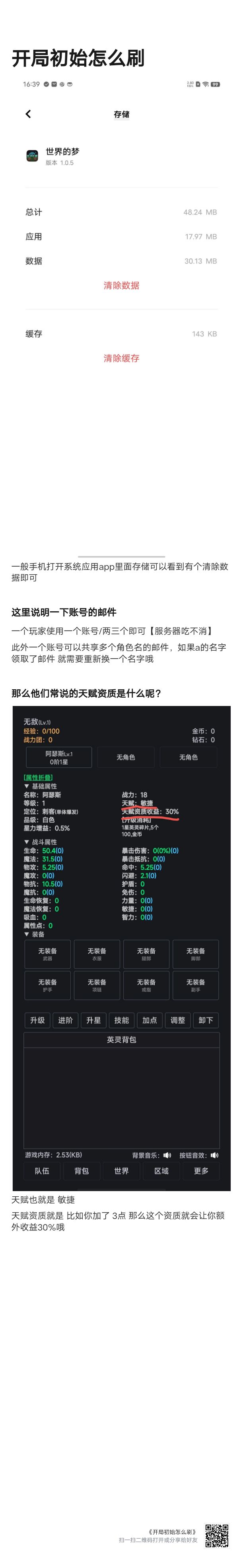 ————————————————————tapplay因为需要审核可能会导致更新较慢。从tap转到群内app前记得上传云存档,游戏没有自动存档。群内会有版本号不变的小更新,tap只有版本号变更才会更新。————————————————————1 要刷初始记得角色名不要重复,不然会没有邮件。2 战斗时点敌方可以看详细面板。云存档界面右上角有个悬浮窗,开启可后台挂机。(息屏挂十几分钟就掉了)