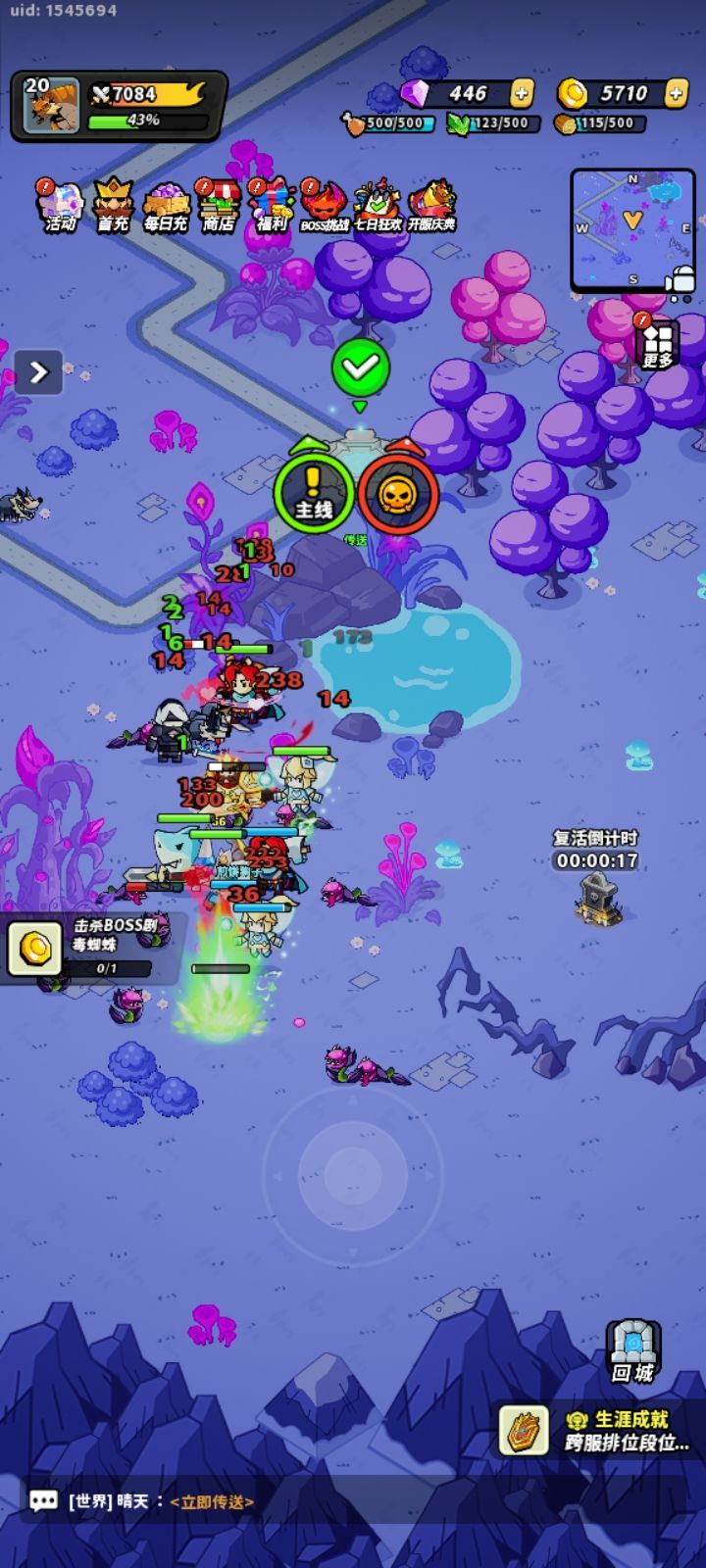 打卡 ✦等级打卡活动参与方式✦: 各位勇者达到20、30、50、70级后 在tap社区发帖打卡需带有文字以及[相关游戏截图] (可以在这四个截图类型:boss场景、装备、各种副本、宠物系统选其一进行分享,且每个等级不可重复使用相同类型的截图参与分享) 参与后将发帖当天链接、游戏账号、游戏ID、相关等级截图发给福利官; 即可领取: 20级:钻石*588+肉*588 30级:钻石*58