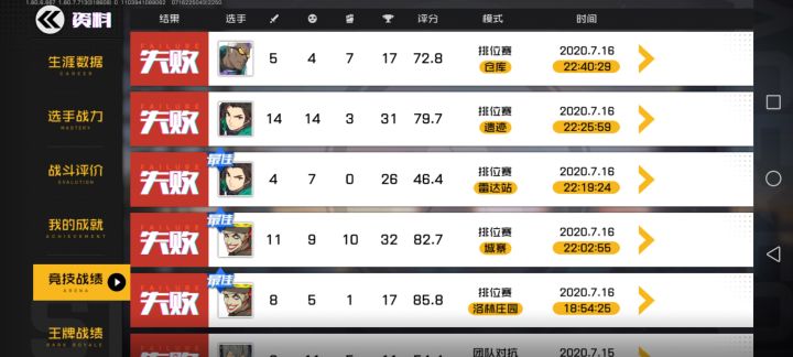 好家伙两个挂机的(段位低请无视)虽说输了但是还加了两颗星(ಡωಡ)我发现我会ak点射了(ಡωಡ)中间那两局团竞请无视,朋友打的