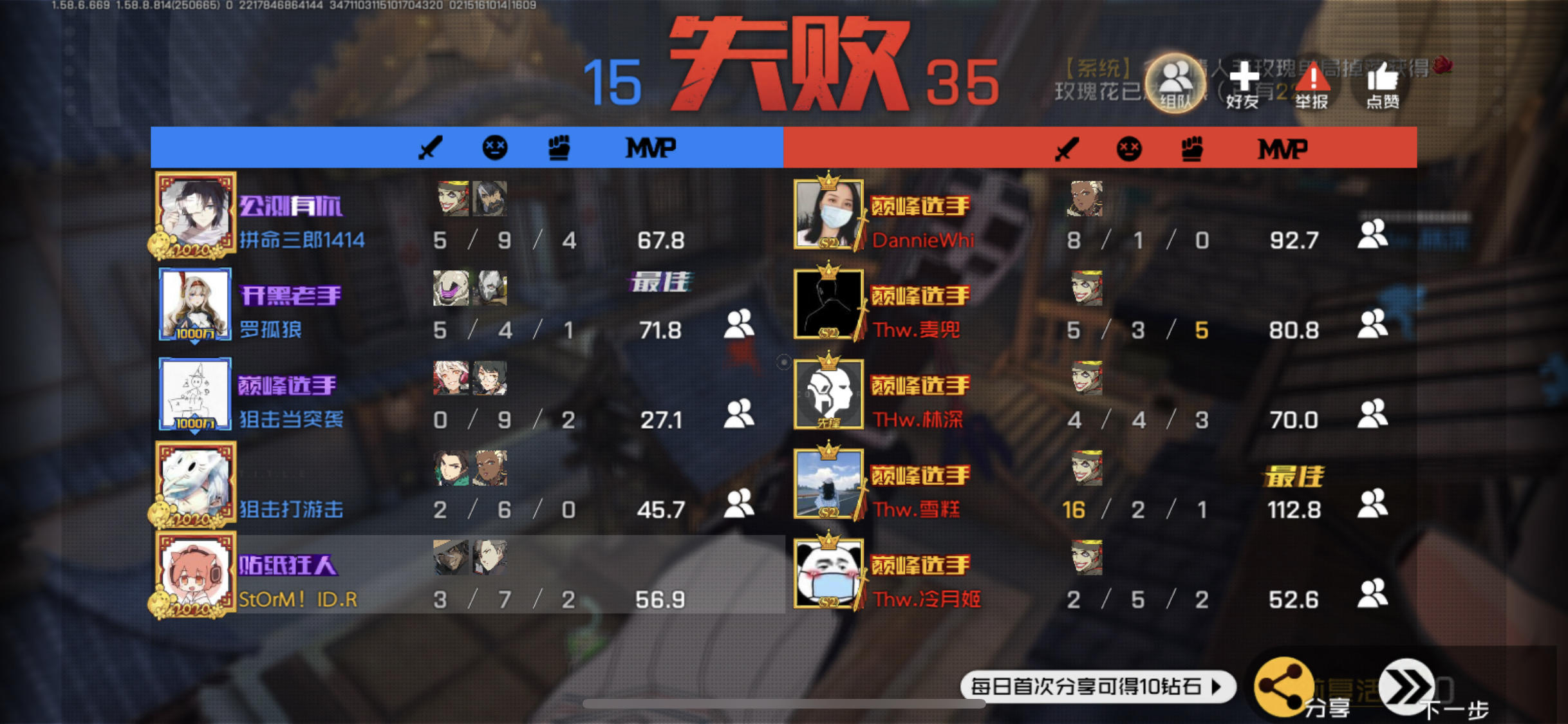 疑惑我在主教就开始几乎把把遇上巅峰选手了(匹配)第一次我吓了一跳,一次一次到最后我就麻木了。虽然有时候自己这边也有巅峰选手,但是感觉像假的一样,比我还菜(没截图,有很多的)我只是想打打匹配放松哇,搞得我只能去打排位,现在才打到战车(晋级赛打了5个虽败犹荣可还行)巅峰选手是真的强我独狼本来kd2.23,现在掉到2.0
