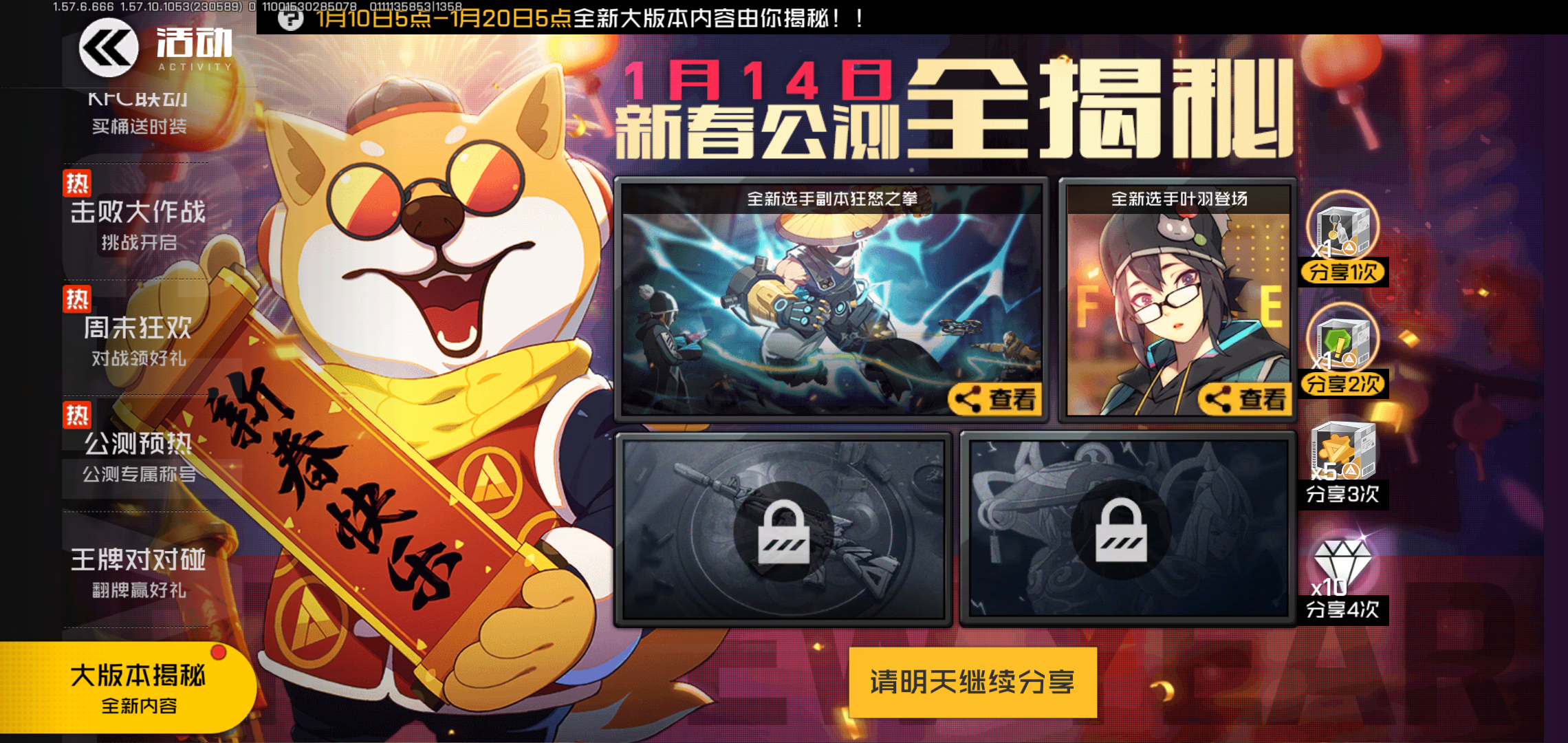 我想问一下,公测版本更新了吗?不是更新活动,就是大版本更新。。。如果更新的话我要下载回来,如果还没有,我再等一会儿就下载