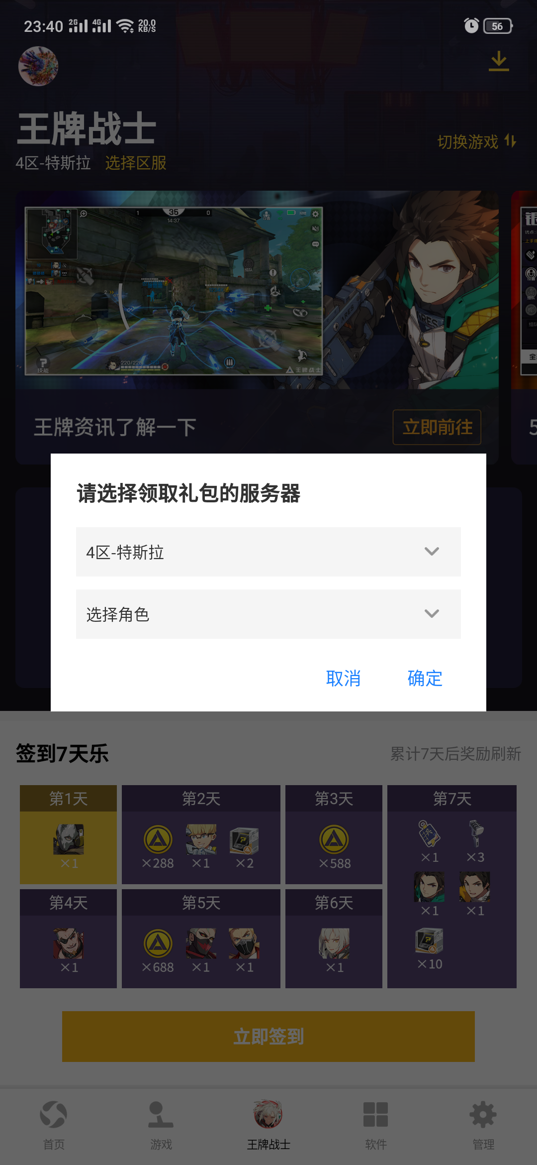分明区服信息都对,但就是查找不到角色,下面的七天签到按钮也没法点。q四区特斯拉,应用宝就是用和游戏里面一样的q号登录的,机型realme x