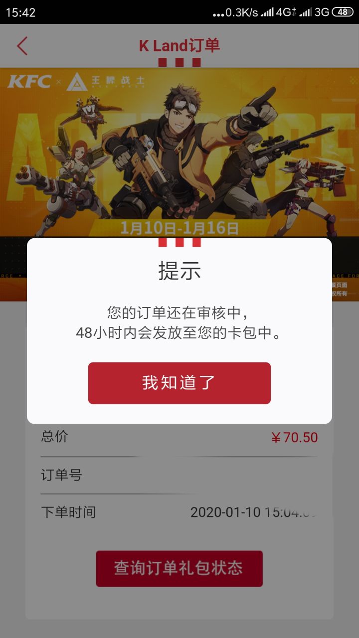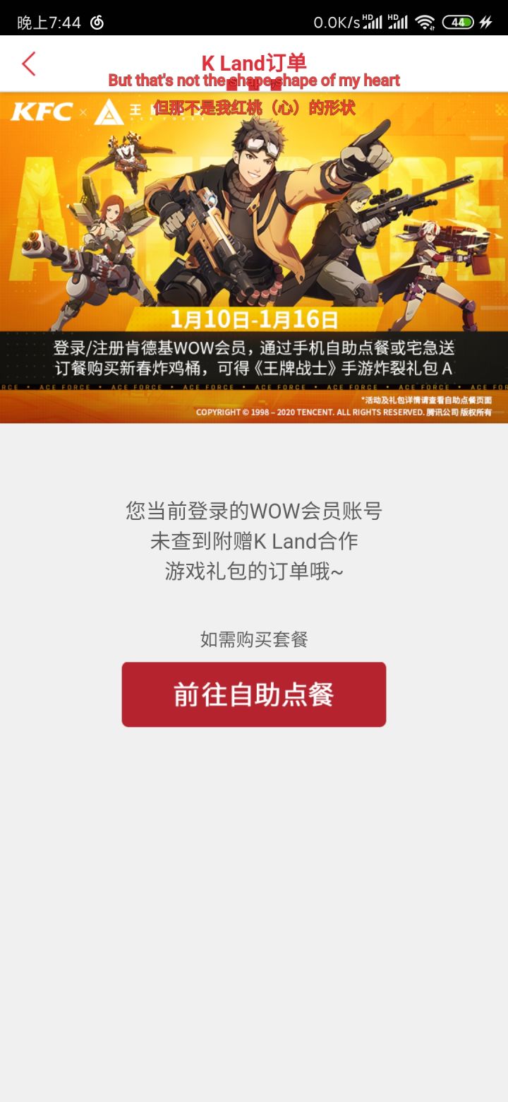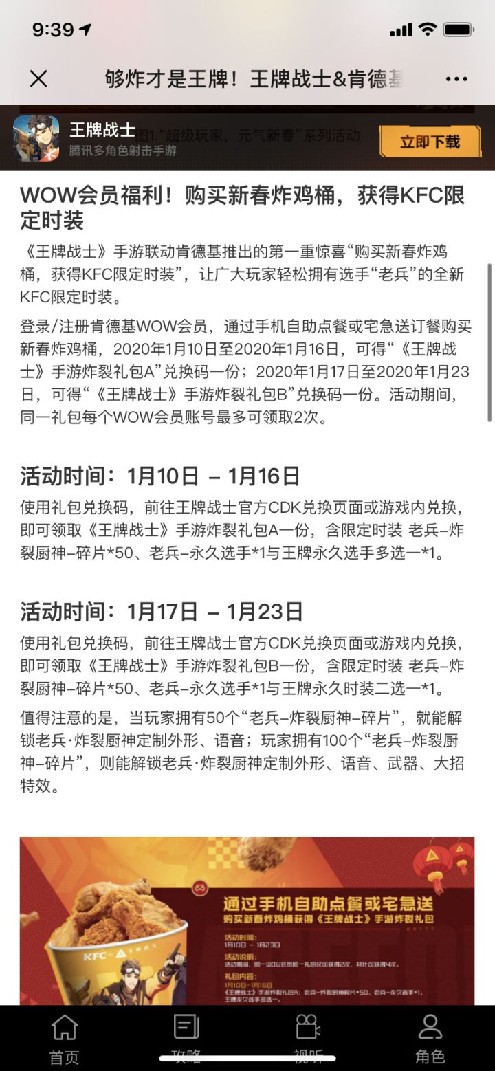 肯德基套餐a:老兵时装*50碎片+老兵永久角色+商城内出售的任意一角色肯德基套餐b:老兵时装*50碎片+老兵永久角色+永久皮肤二选一解释:只能在手机上下单(记住这个)。下载肯德基app注册账号就可以了(不用去开通会员啥的)。同一礼包每个账号最多可以领取两次,桶你随便买多少无所谓,但是cdk你只能领取两次,懂?