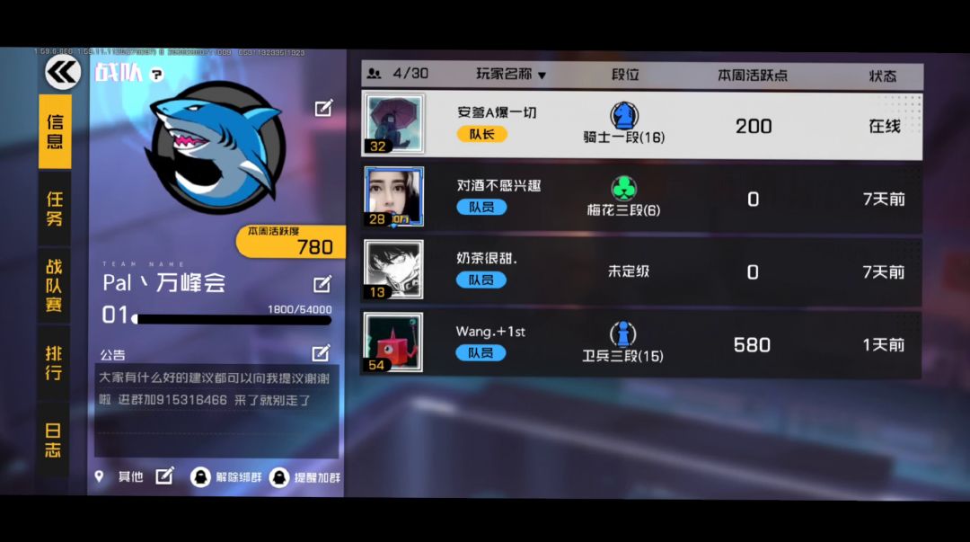战队收四个跟我一起打战队赛的!!!