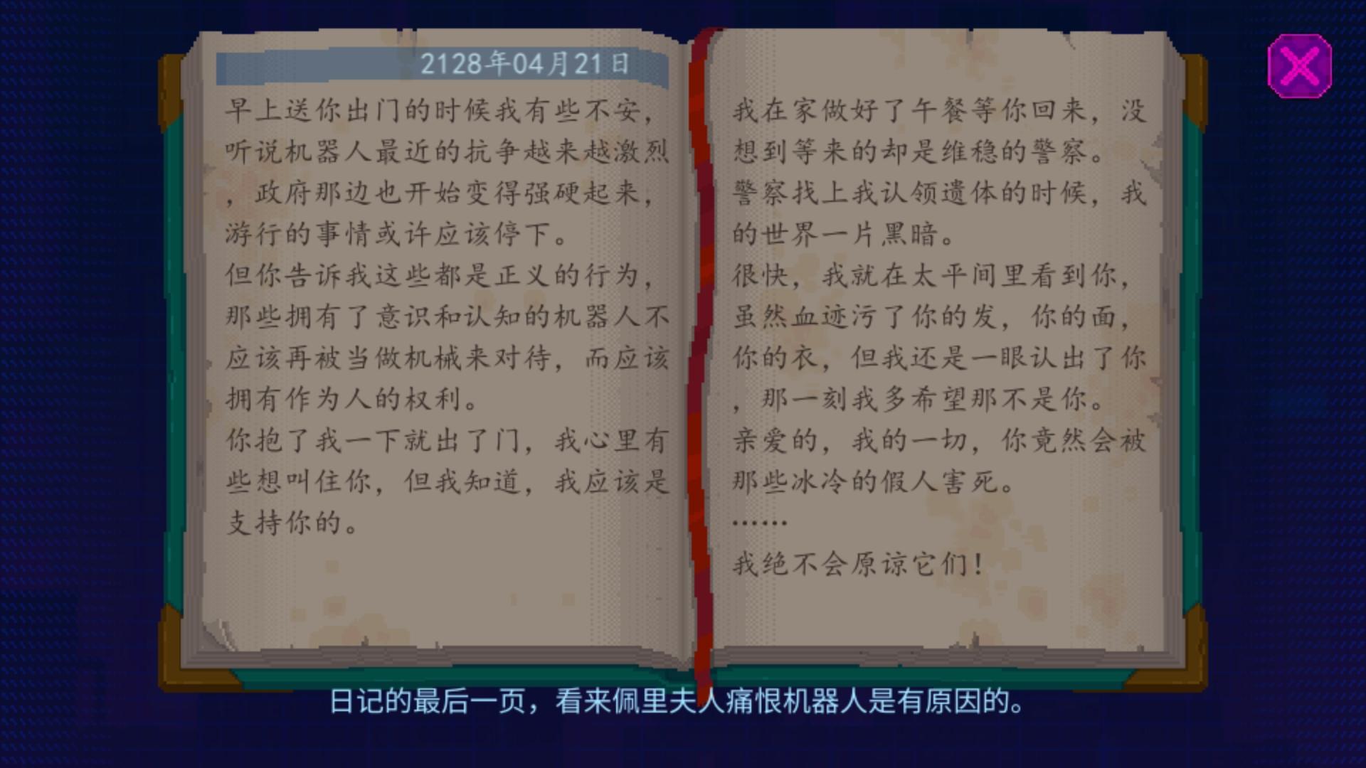 这游戏做的真好啊🥺 完全可以收费的程度 内容丰富 里面好像也有很多动漫等元素 坐着电梯深入地底的时候像cube escape一样给我毛骨悚然孤军奋战的感觉 剧情很吸引人 机器人和人的关系虽然是个老生常谈的话题 但还引入了宗教和各种科技也是非常有新意的点 案件的细节真的是可圈可点值得推敲 探索的自由点也是满分💯 还有布雷登真的只是路人甲吗 我不信
