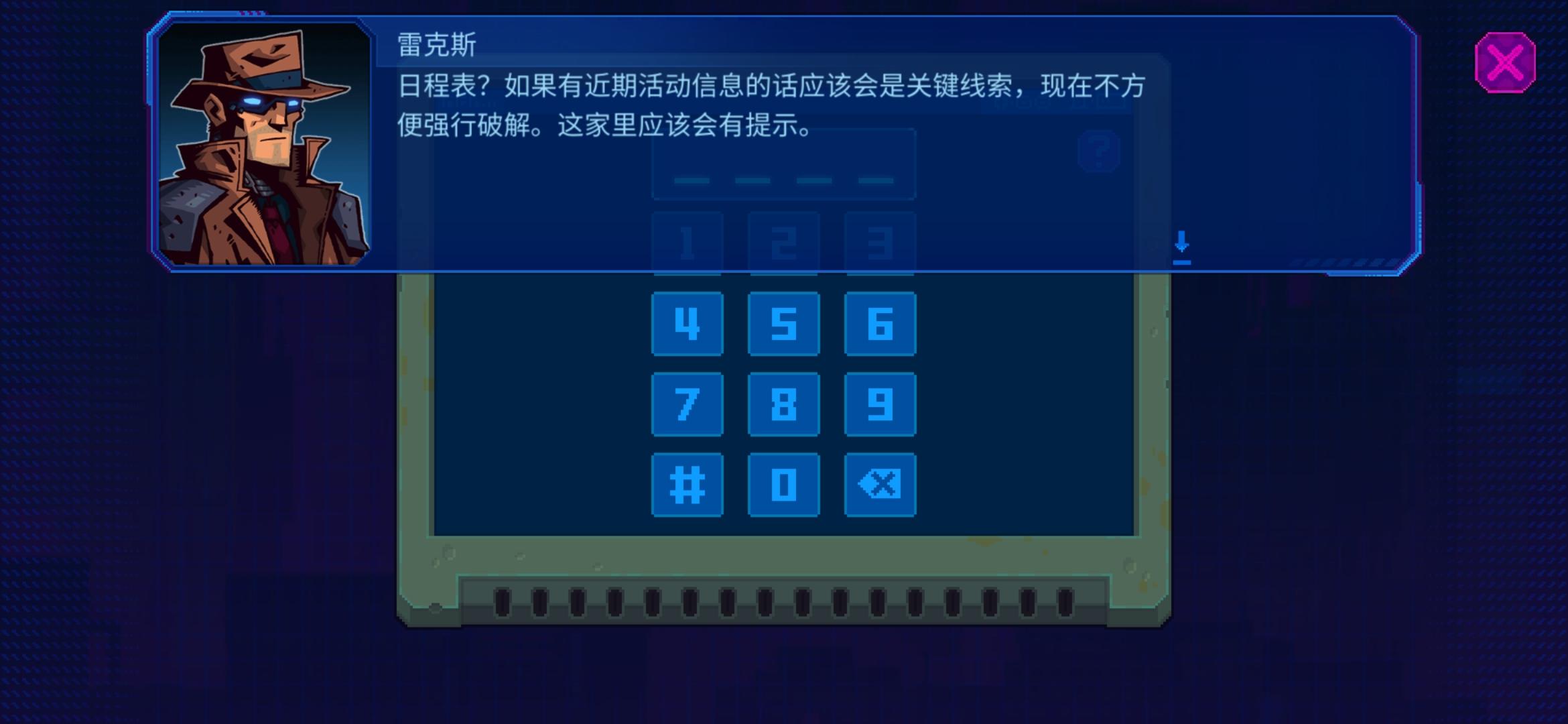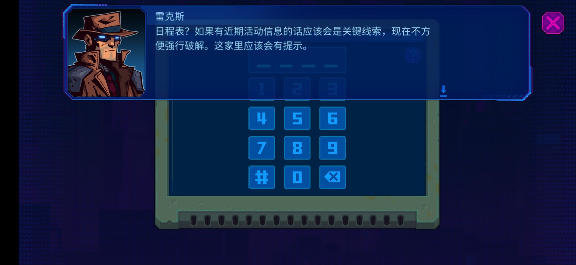 在第一章槐花公寓303的那个日程表密码,主角说完话之后就马上闪退,怎么也没法输密码。退游戏都不管用,没删,怕进度没了😂😂