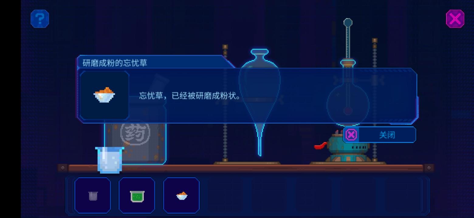 磨忘忧草的同时拿起药会卡死在这里无法操作……还有仓库那边集齐其他酒之后出来的那个酒瓶子退出会消失,但没截图