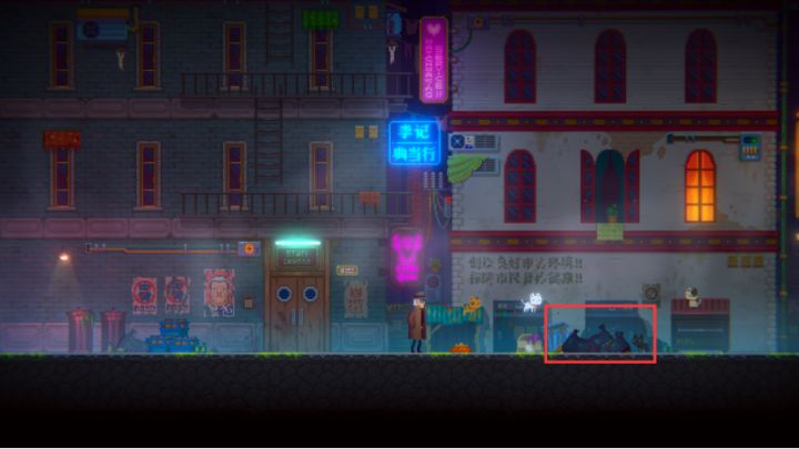 佩里夫人?后巷命案!时间:2140年10月20日,星期四,中午我们在这里遇见了白猫伊丽莎白和威廉,伊丽莎白身上有不寻常的血迹,我们往右调查垃圾堆。发现佩里夫人的尸体,在报警之后,我们要调查现场。进入线索搜集与推理阶段,这也是本游戏中比较核心的玩法,通过调查每一个细节,获取几个关键线索,拼凑线索还原犯罪过程。主角有两种视觉模式:1.普通视野;2.侦探视野。首先要在普通视野中调查下图3个位置,